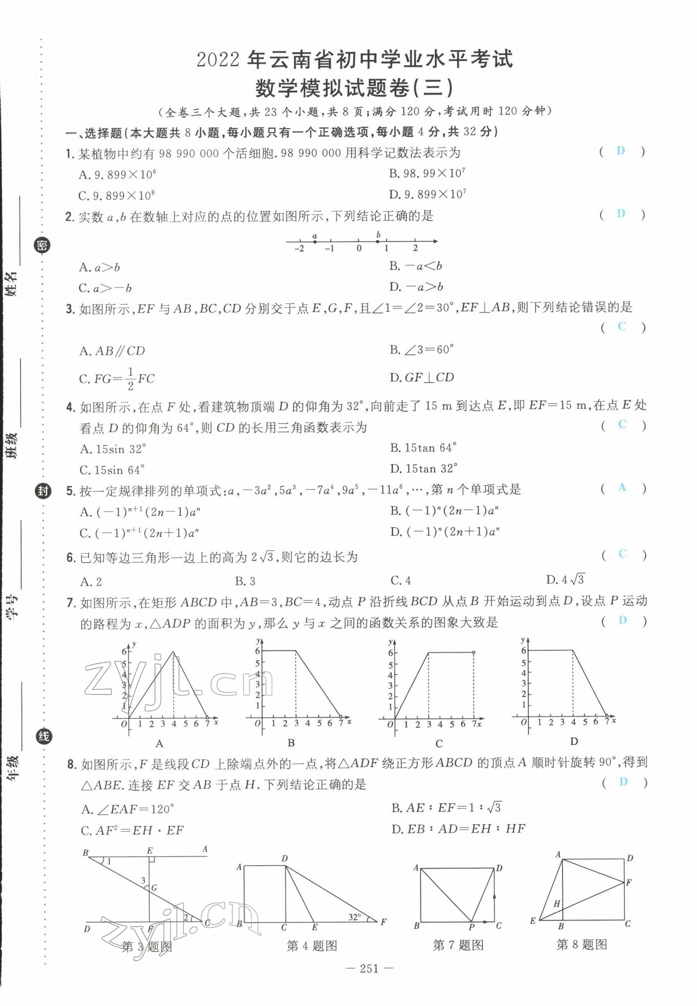 注:目前有些书本章节名称可能整理的还不是很完善,但都是按照顺序排列的,请同学们按照顺序仔细查找。练习册 2022年云南省初中学业水平考试导与练数学云南专版 答案主要是用来给同学们做完题方便对答案用的,请勿直接抄袭。