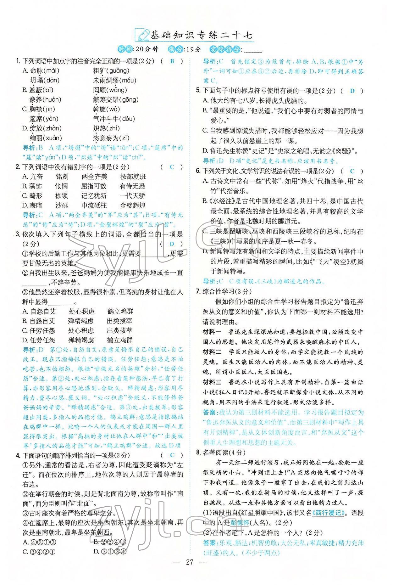 - 参考答案第27页