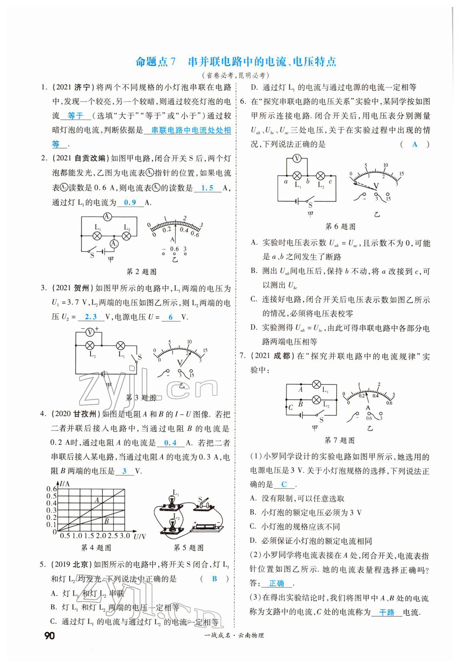 注:目前有些书本章节名称可能整理的还不是很完善,但都是按照顺序排列的,请同学们按照顺序仔细查找。练习册 2022年一战成名考前新方案物理云南中考 答案主要是用来给同学们做完题方便对答案用的,请勿直接抄袭。