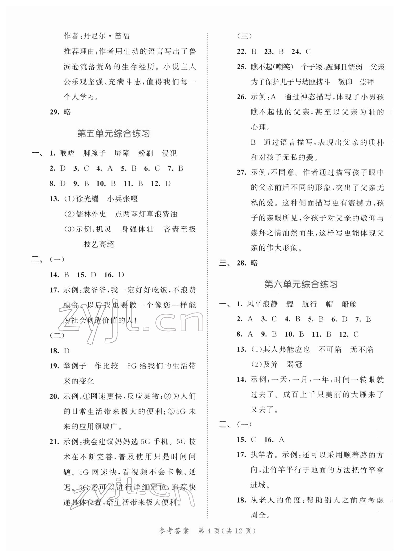 注:目前有些书本章节名称可能整理的还不是很完善,但都是按照顺序排列的,请同学们按照顺序仔细查找。练习册 2022年53全优卷五年级语文下册人教版福建专版 答案主要是用来给同学们做完题方便对答案用的,请勿直接抄袭。