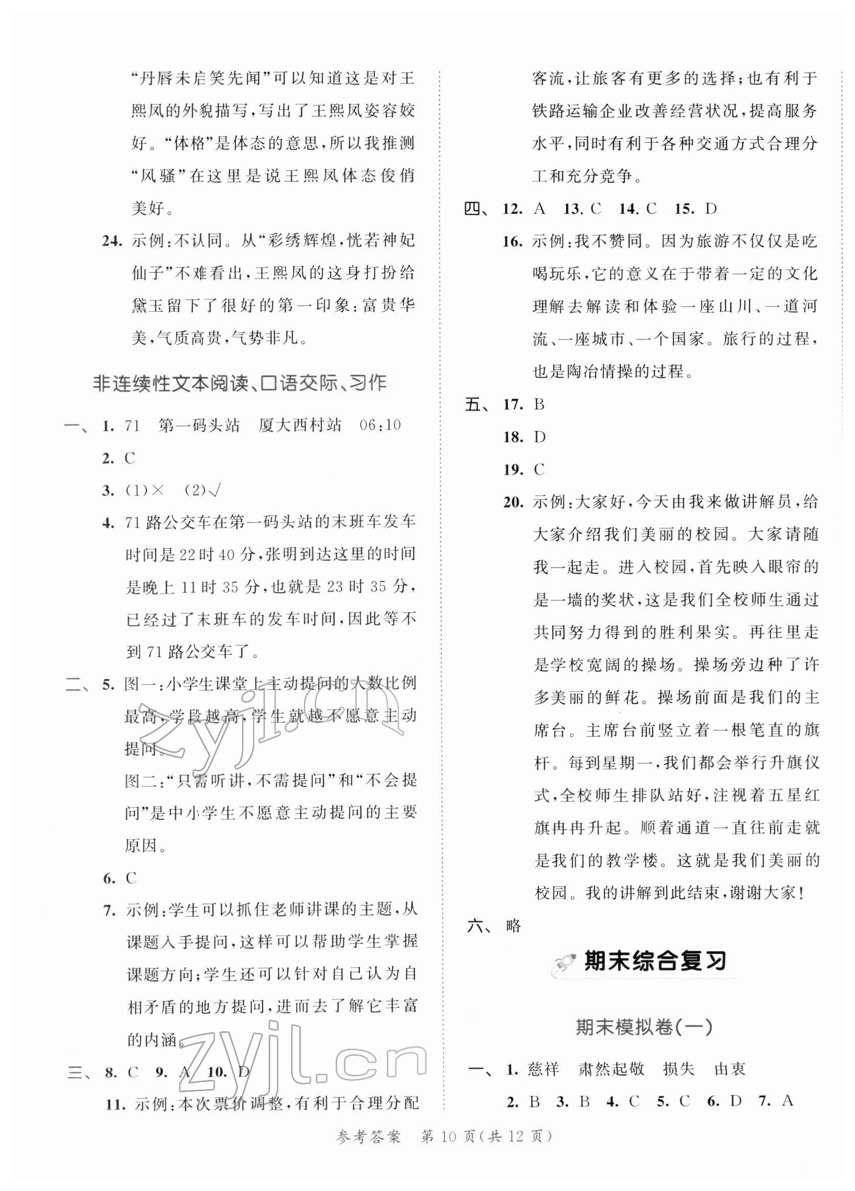 注:目前有些书本章节名称可能整理的还不是很完善,但都是按照顺序排列的,请同学们按照顺序仔细查找。练习册 2022年53全优卷五年级语文下册人教版福建专版 答案主要是用来给同学们做完题方便对答案用的,请勿直接抄袭。