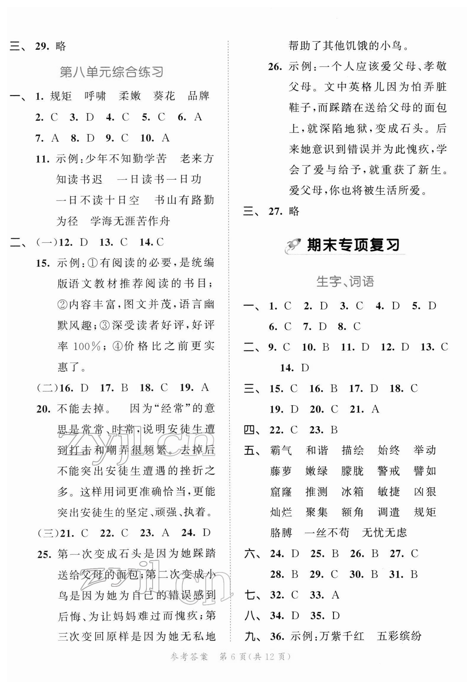 注:目前有些书本章节名称可能整理的还不是很完善,但都是按照顺序排列的,请同学们按照顺序仔细查找。练习册 2022年53全优卷四年级语文下册人教版福建专版 答案主要是用来给同学们做完题方便对答案用的,请勿直接抄袭。