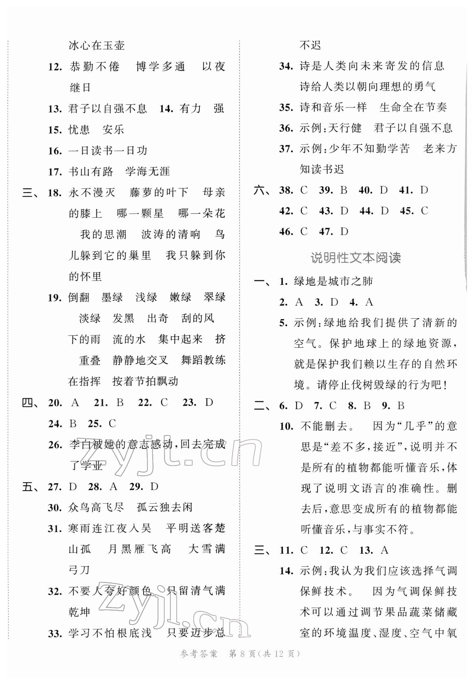 注:目前有些书本章节名称可能整理的还不是很完善,但都是按照顺序排列的,请同学们按照顺序仔细查找。练习册 2022年53全优卷四年级语文下册人教版福建专版 答案主要是用来给同学们做完题方便对答案用的,请勿直接抄袭。