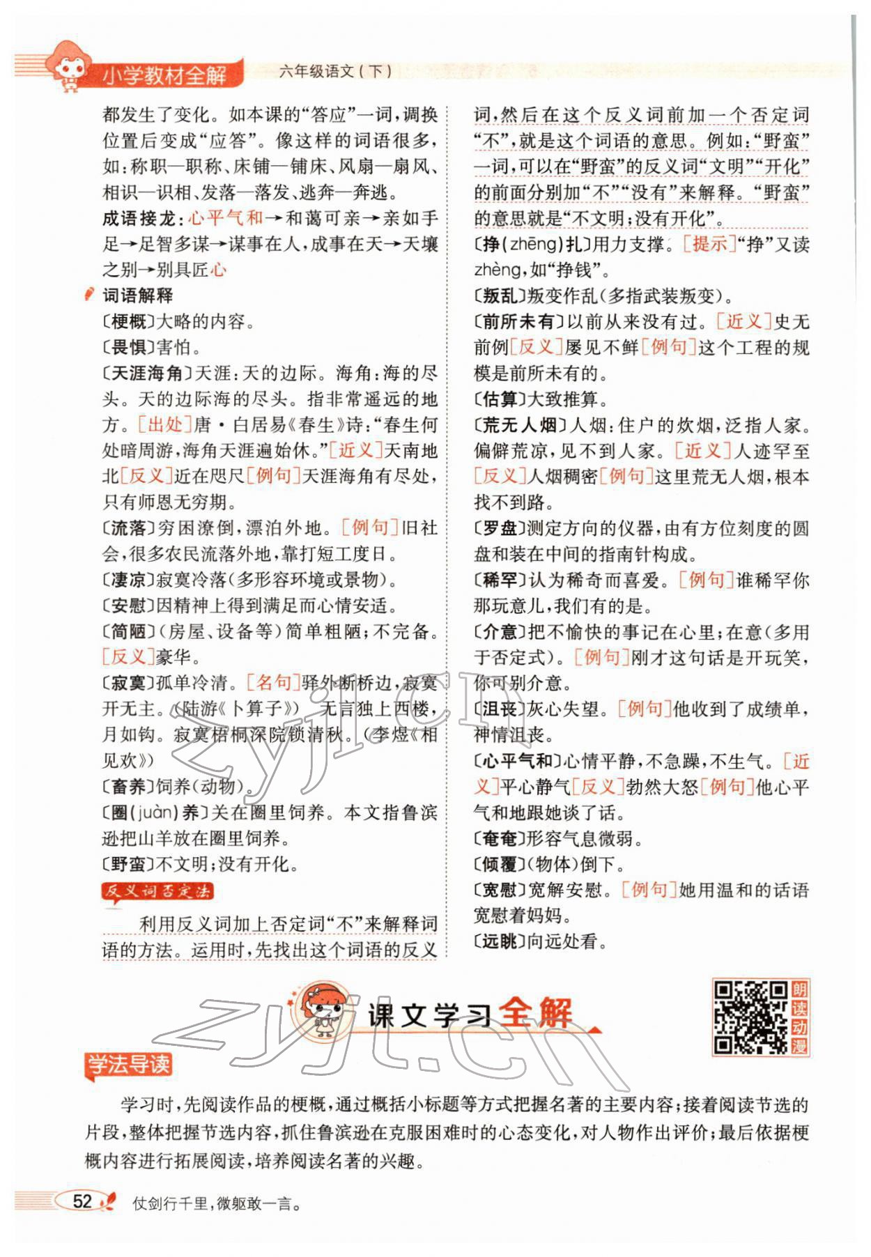 2022年教材全解六年级语文下册人教版广东专版