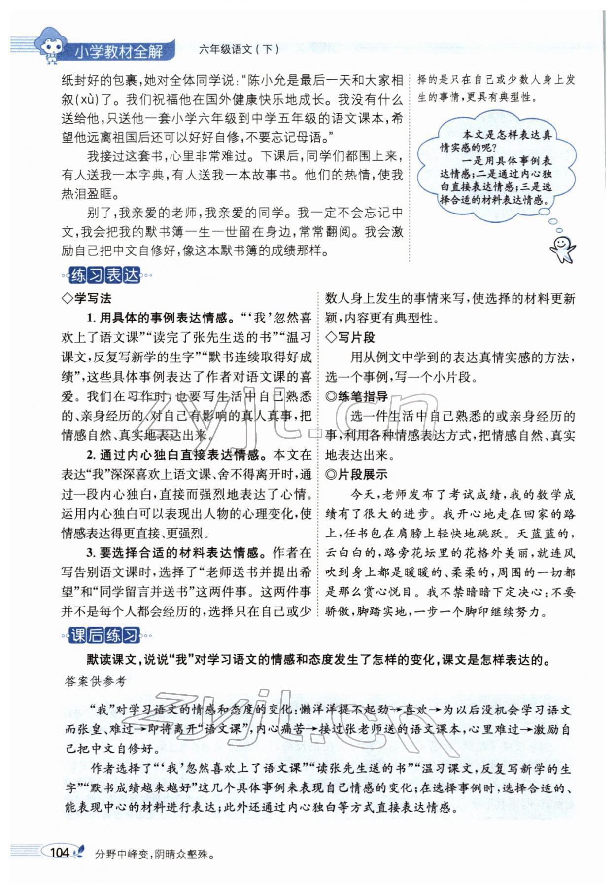 注:目前有些书本章节名称可能整理的还不是很完善,但都是按照顺序排列的,请同学们按照顺序仔细查找。练习册 2022年教材全解六年级语文下册人教版广东专版 答案主要是用来给同学们做完题方便对答案用的,请勿直接抄袭。