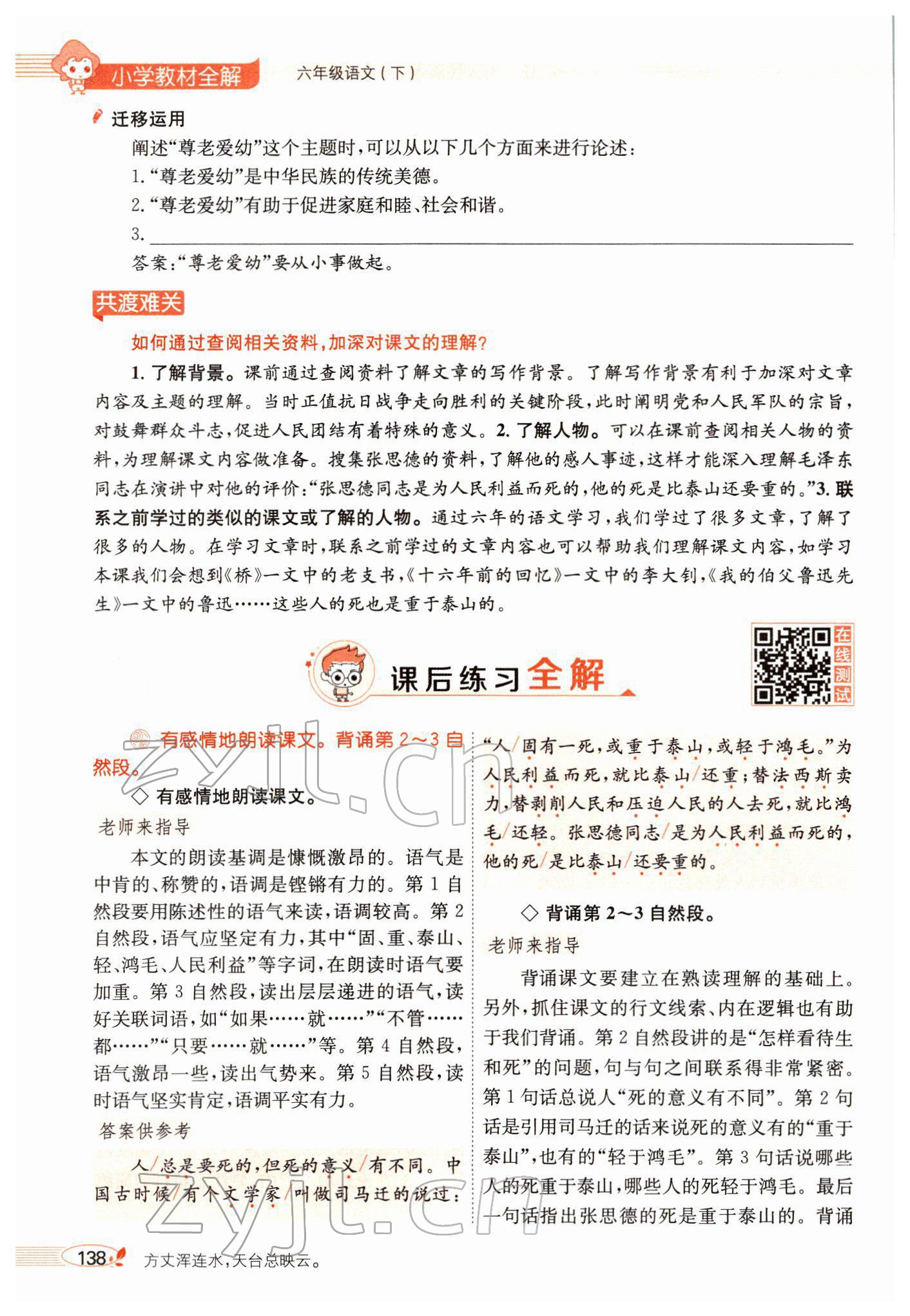 注:目前有些书本章节名称可能整理的还不是很完善,但都是按照顺序排列的,请同学们按照顺序仔细查找。练习册 2022年教材全解六年级语文下册人教版广东专版 答案主要是用来给同学们做完题方便对答案用的,请勿直接抄袭。