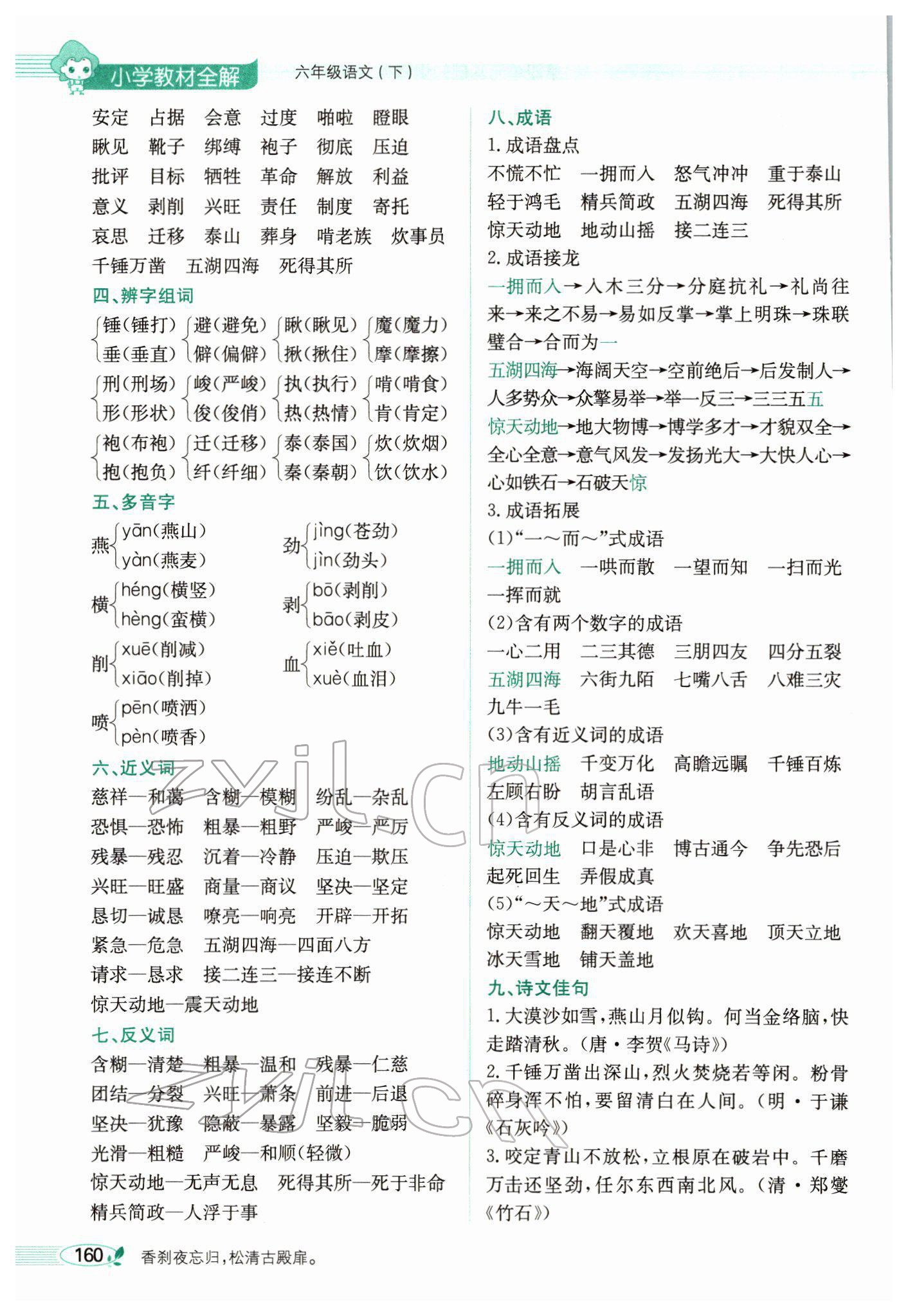 注:目前有些书本章节名称可能整理的还不是很完善,但都是按照顺序排列的,请同学们按照顺序仔细查找。练习册 2022年教材全解六年级语文下册人教版广东专版 答案主要是用来给同学们做完题方便对答案用的,请勿直接抄袭。