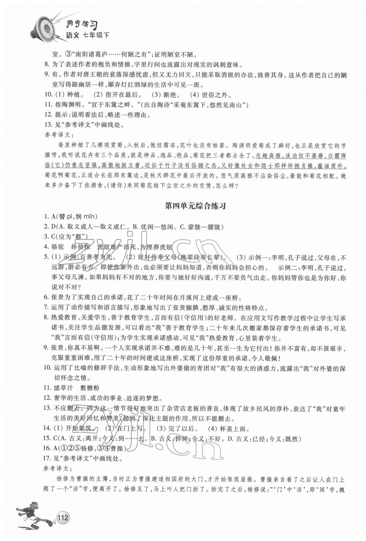 注:目前有些书本章节名称可能整理的还不是很完善,但都是按照顺序排列的,请同学们按照顺序仔细查找。练习册 2022年同步练习浙江教育出版社七年级语文下册人教版 答案主要是用来给同学们做完题方便对答案用的,请勿直接抄袭。