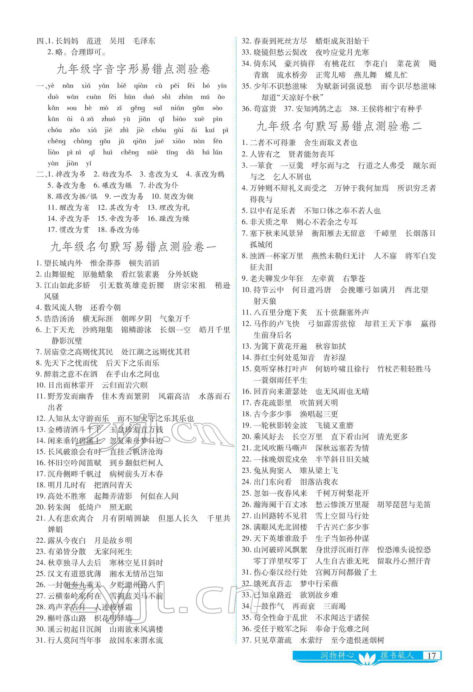 注:目前有些书本章节名称可能整理的还不是很完善,但都是按照顺序排列的,请同学们按照顺序仔细查找。练习册 2022年721新中考新方向语文 答案主要是用来给同学们做完题方便对答案用的,请勿直接抄袭。