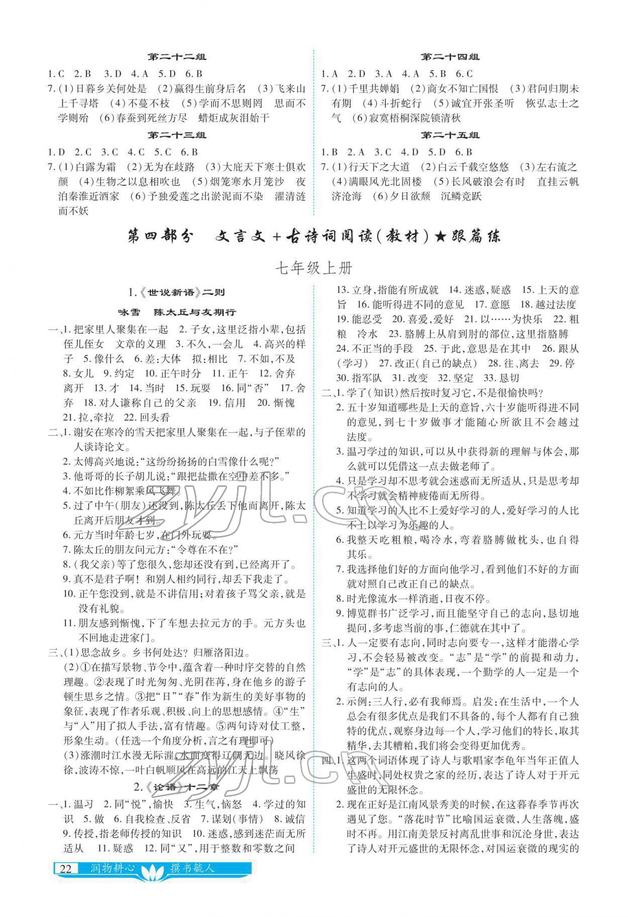 注:目前有些书本章节名称可能整理的还不是很完善,但都是按照顺序排列的,请同学们按照顺序仔细查找。练习册 2022年721新中考新方向语文 答案主要是用来给同学们做完题方便对答案用的,请勿直接抄袭。