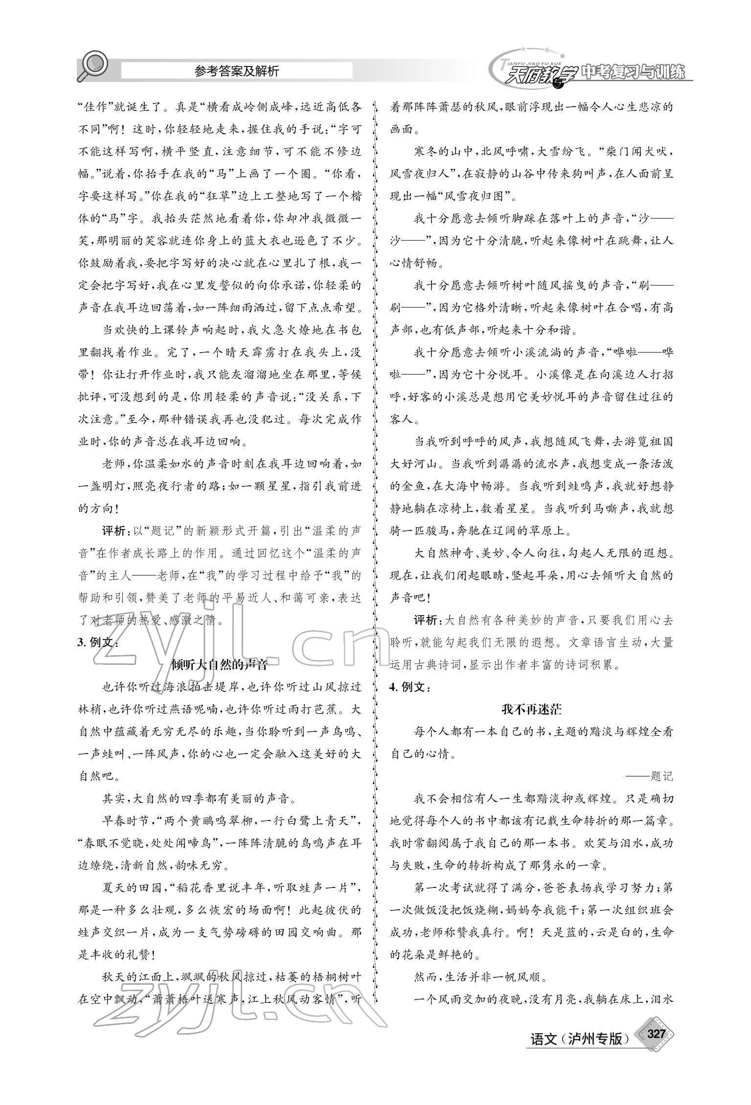 注:目前有些书本章节名称可能整理的还不是很完善,但都是按照顺序排列的,请同学们按照顺序仔细查找。练习册 2022年天府教与学中考复习与训练语文泸州专版 答案主要是用来给同学们做完题方便对答案用的,请勿直接抄袭。