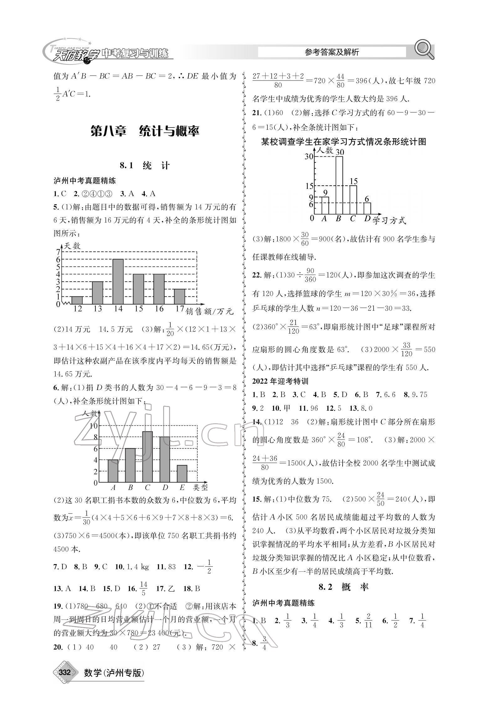 注:目前有些书本章节名称可能整理的还不是很完善,但都是按照顺序排列的,请同学们按照顺序仔细查找。练习册 2022年天府教与学中考复习与训练数学泸州专版 答案主要是用来给同学们做完题方便对答案用的,请勿直接抄袭。