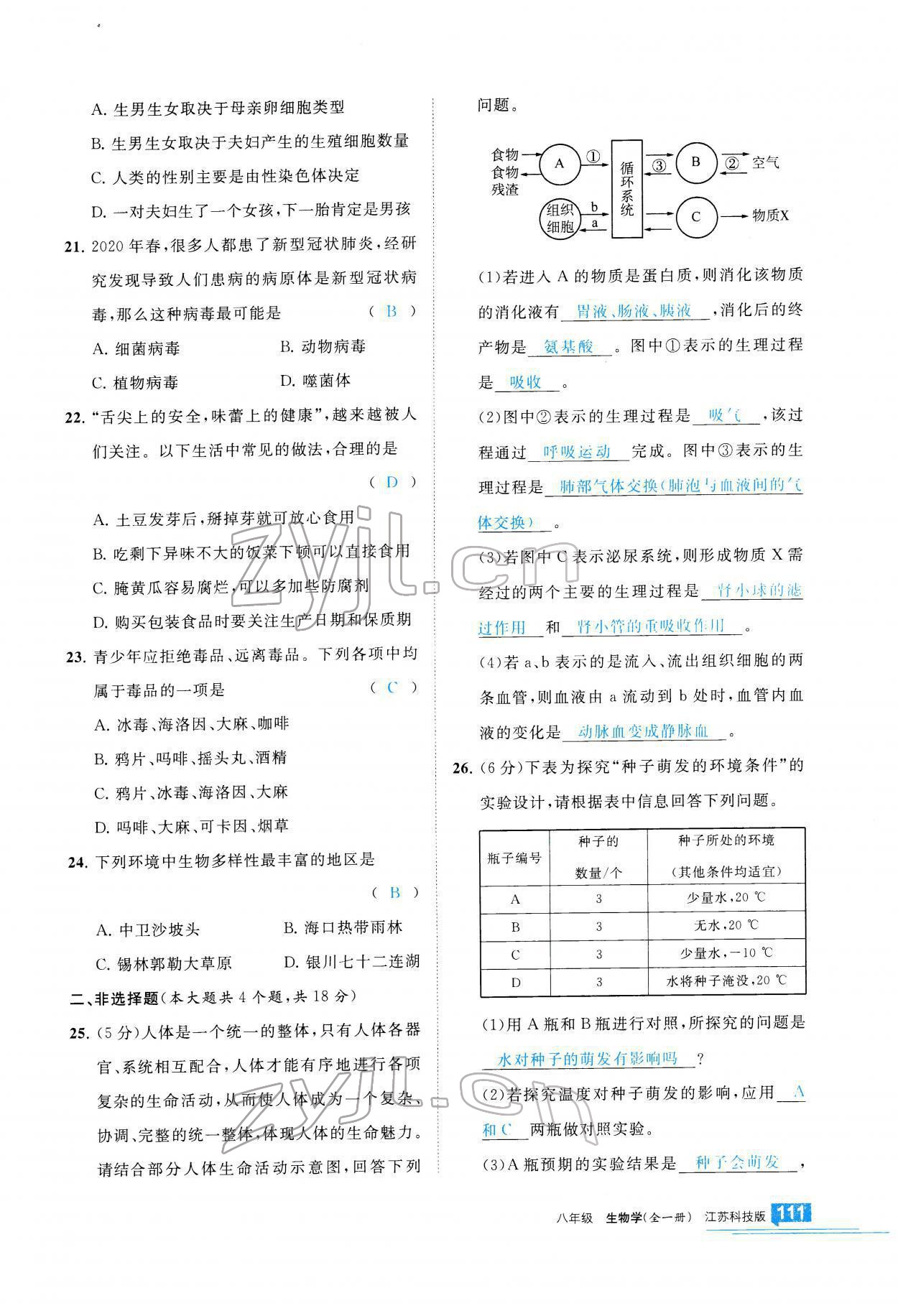 注:目前有些书本章节名称可能整理的还不是很完善,但都是按照顺序排列的,请同学们按照顺序仔细查找。练习册 2021年学习之友八年级生物全一册苏科版 答案主要是用来给同学们做完题方便对答案用的,请勿直接抄袭。