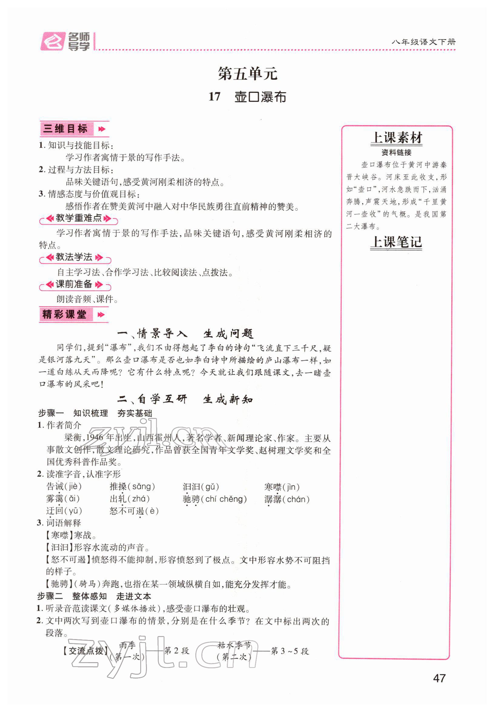 注:目前有些书本章节名称可能整理的还不是很完善,但都是按照顺序排列的,请同学们按照顺序仔细查找。练习册 2022年名师测控八年级语文下册人教版Ⅱ云南专版 答案主要是用来给同学们做完题方便对答案用的,请勿直接抄袭。