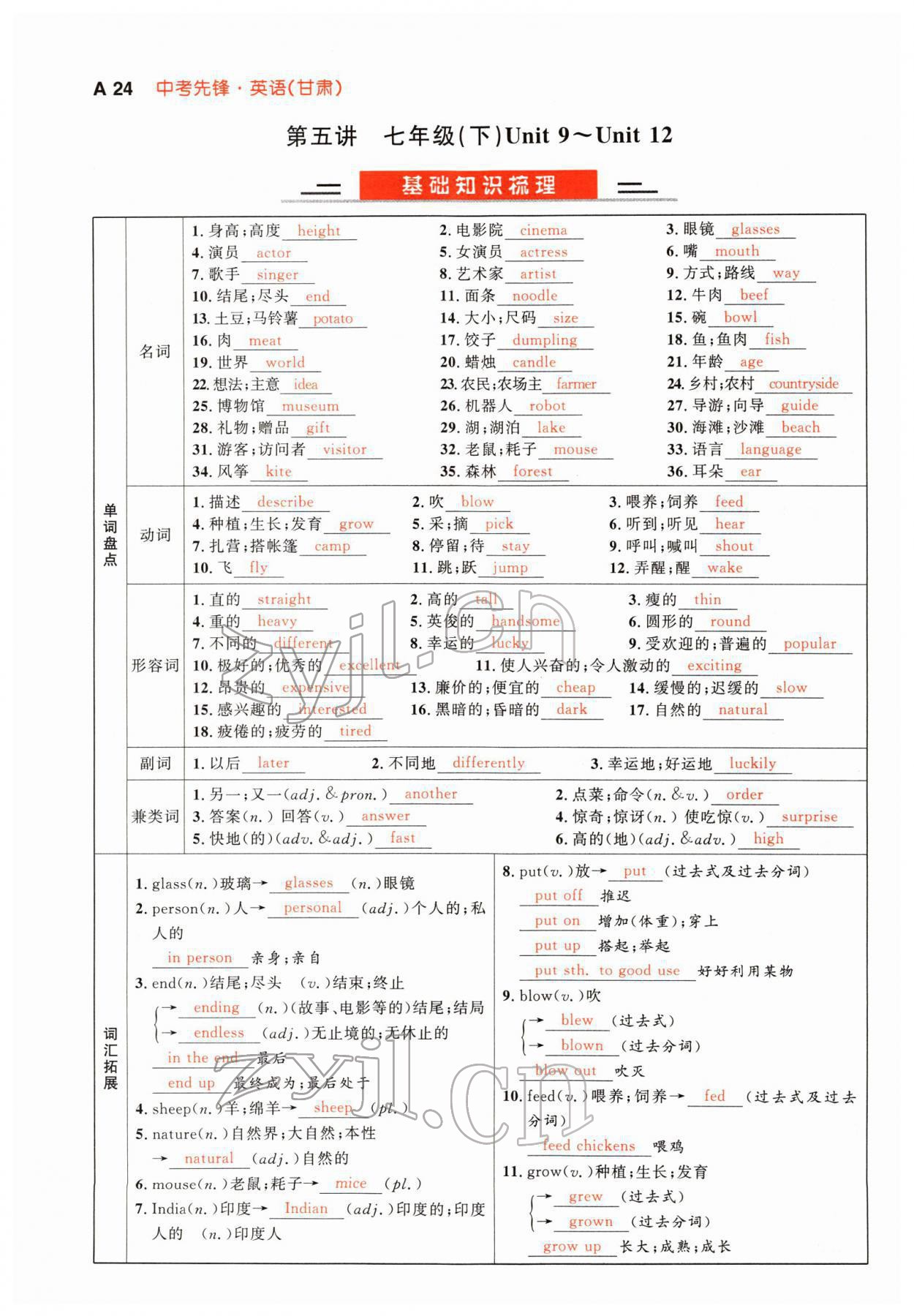 注:目前有些书本章节名称可能整理的还不是很完善,但都是按照顺序排列的,请同学们按照顺序仔细查找。练习册 2022年中考先锋英语甘肃专版吉林出版集团 答案主要是用来给同学们做完题方便对答案用的,请勿直接抄袭。