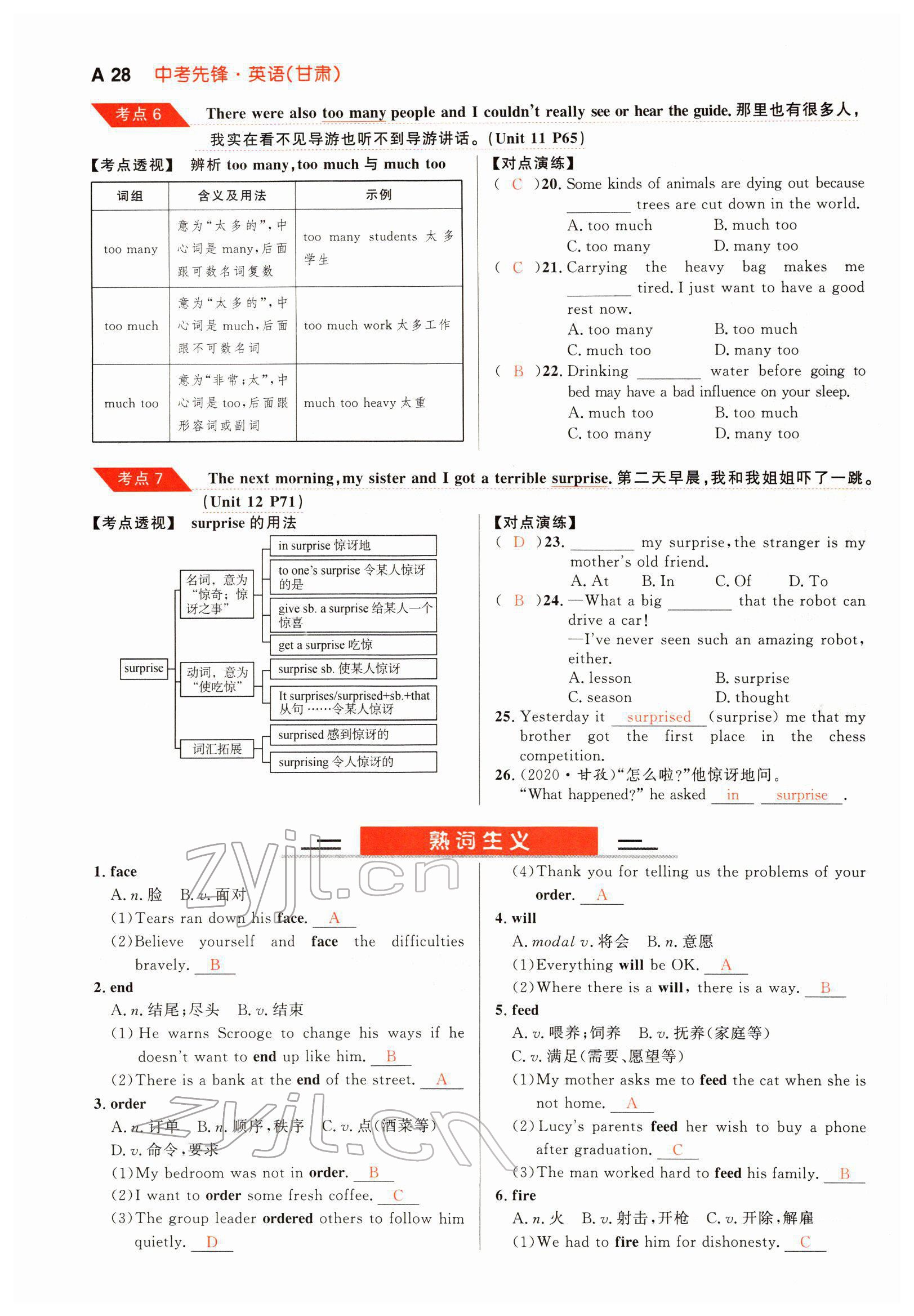 注:目前有些书本章节名称可能整理的还不是很完善,但都是按照顺序排列的,请同学们按照顺序仔细查找。练习册 2022年中考先锋英语甘肃专版吉林出版集团 答案主要是用来给同学们做完题方便对答案用的,请勿直接抄袭。