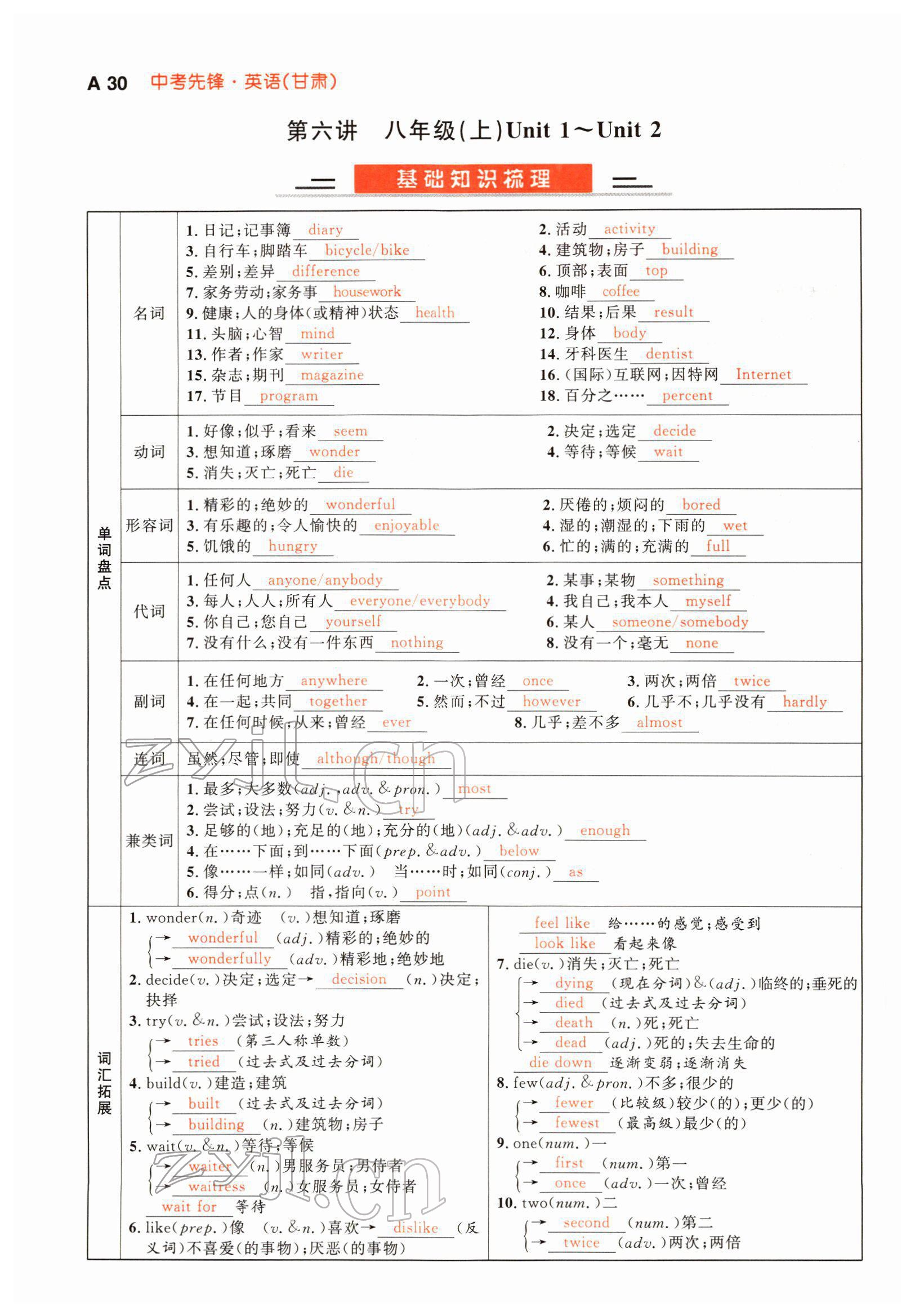 注:目前有些书本章节名称可能整理的还不是很完善,但都是按照顺序排列的,请同学们按照顺序仔细查找。练习册 2022年中考先锋英语甘肃专版吉林出版集团 答案主要是用来给同学们做完题方便对答案用的,请勿直接抄袭。