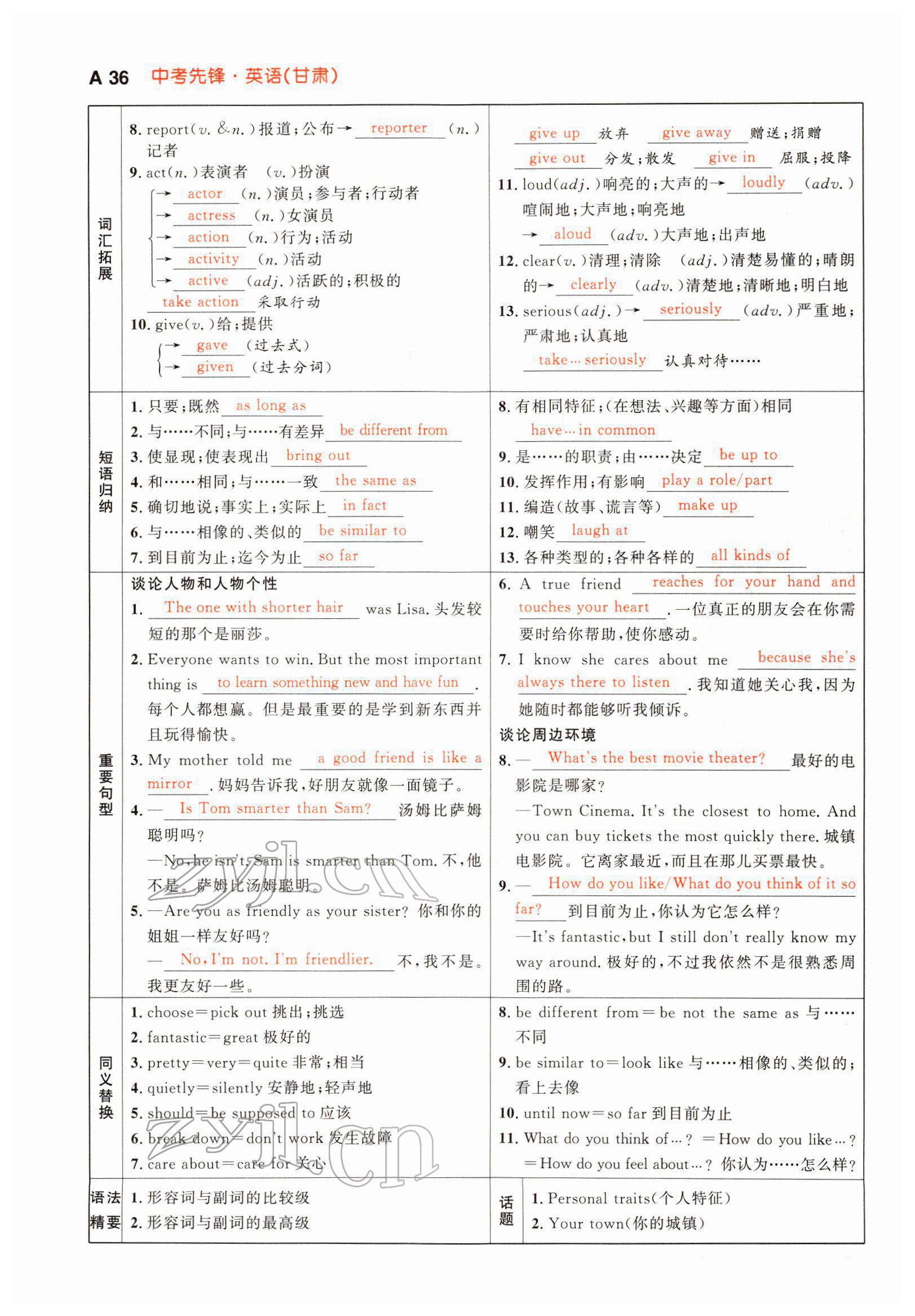 注:目前有些书本章节名称可能整理的还不是很完善,但都是按照顺序排列的,请同学们按照顺序仔细查找。练习册 2022年中考先锋英语甘肃专版吉林出版集团 答案主要是用来给同学们做完题方便对答案用的,请勿直接抄袭。