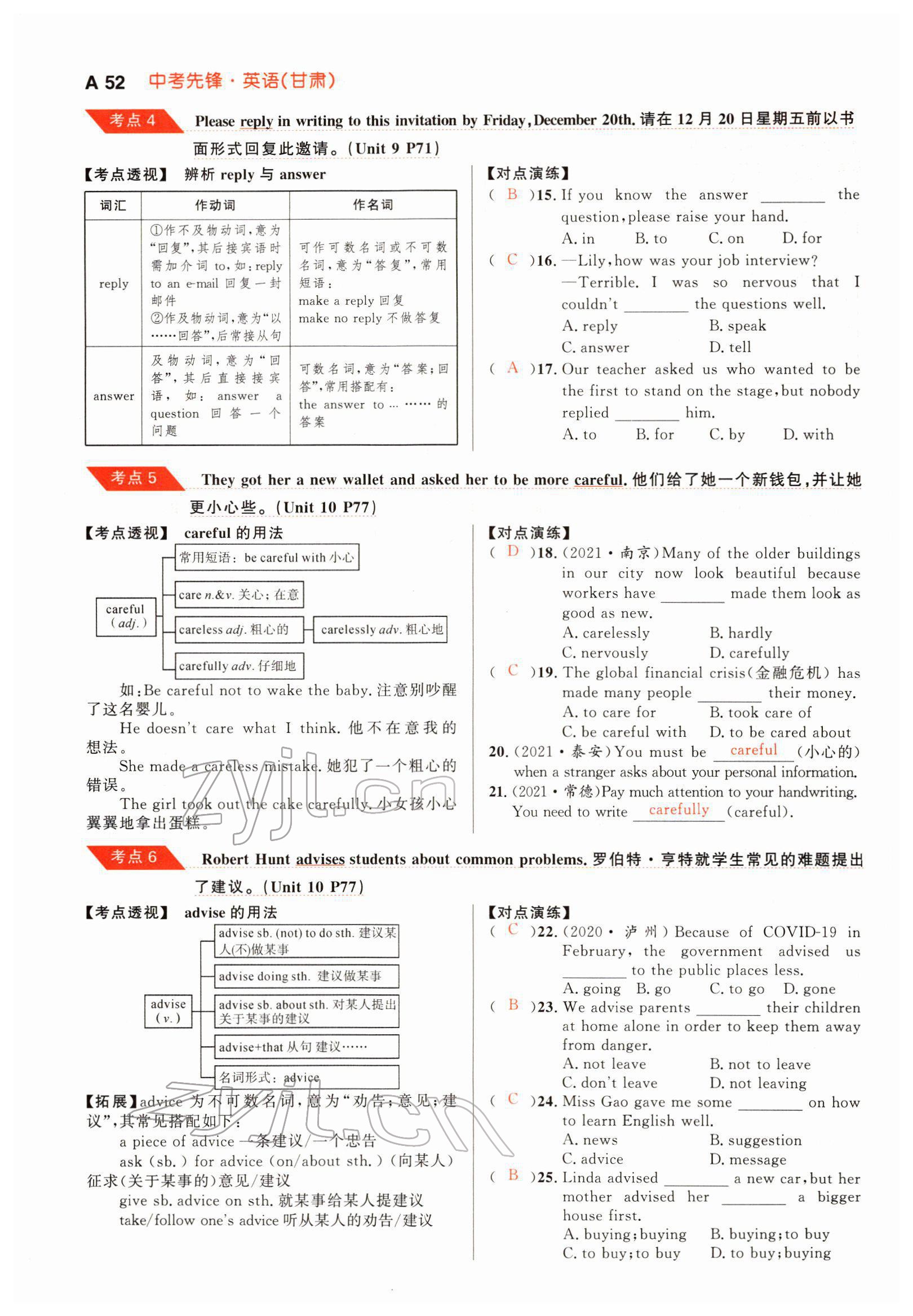 注:目前有些书本章节名称可能整理的还不是很完善,但都是按照顺序排列的,请同学们按照顺序仔细查找。练习册 2022年中考先锋英语甘肃专版吉林出版集团 答案主要是用来给同学们做完题方便对答案用的,请勿直接抄袭。
