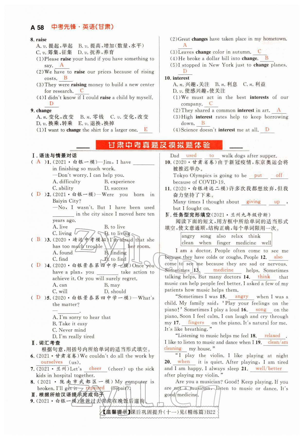 注:目前有些书本章节名称可能整理的还不是很完善,但都是按照顺序排列的,请同学们按照顺序仔细查找。练习册 2022年中考先锋英语甘肃专版吉林出版集团 答案主要是用来给同学们做完题方便对答案用的,请勿直接抄袭。