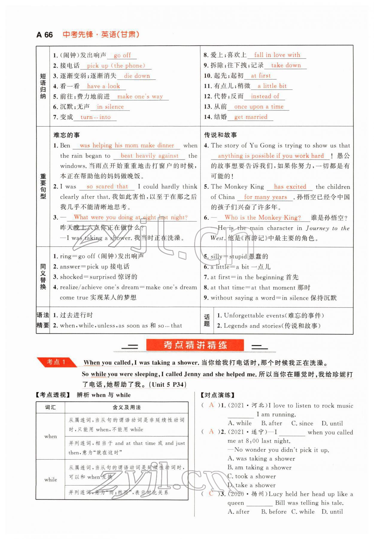 注:目前有些书本章节名称可能整理的还不是很完善,但都是按照顺序排列的,请同学们按照顺序仔细查找。练习册 2022年中考先锋英语甘肃专版吉林出版集团 答案主要是用来给同学们做完题方便对答案用的,请勿直接抄袭。
