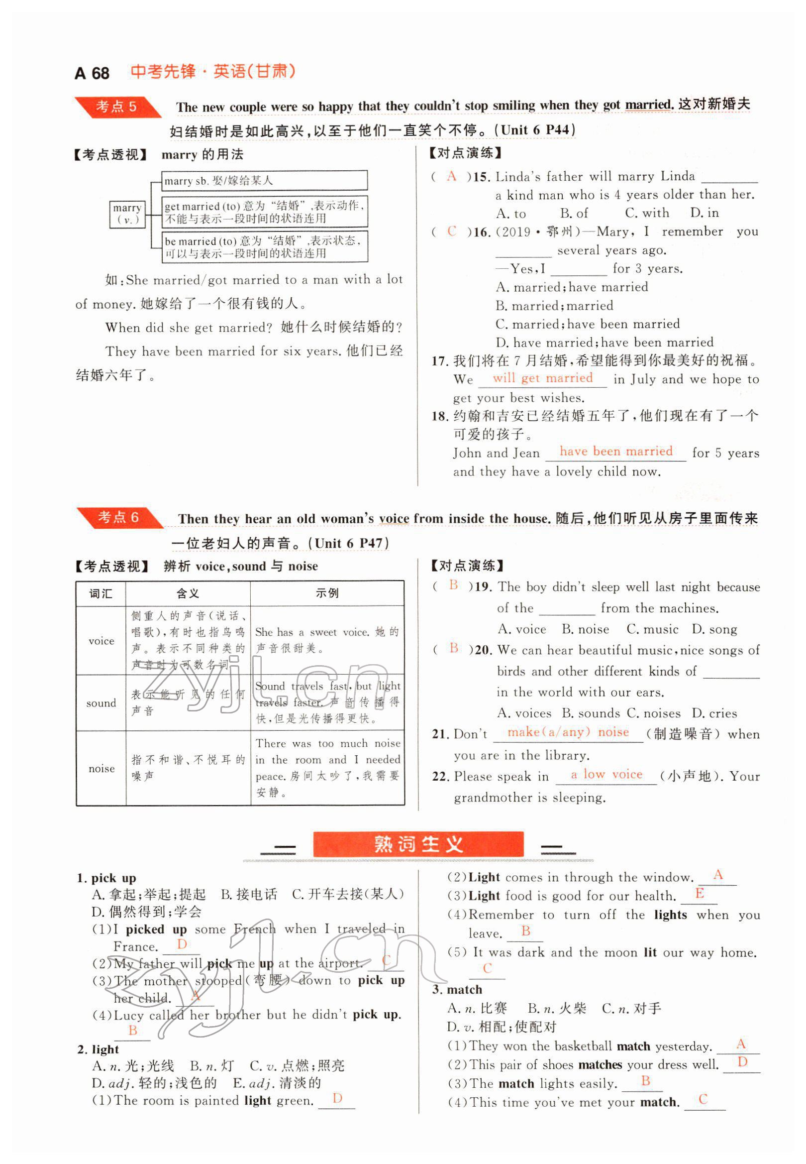 注:目前有些书本章节名称可能整理的还不是很完善,但都是按照顺序排列的,请同学们按照顺序仔细查找。练习册 2022年中考先锋英语甘肃专版吉林出版集团 答案主要是用来给同学们做完题方便对答案用的,请勿直接抄袭。