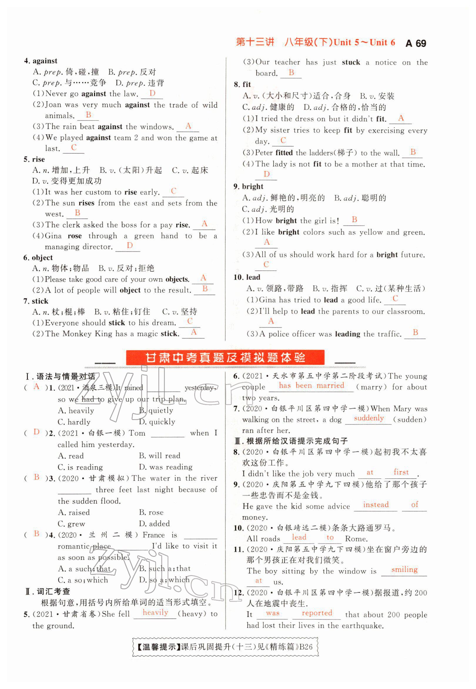 注:目前有些书本章节名称可能整理的还不是很完善,但都是按照顺序排列的,请同学们按照顺序仔细查找。练习册 2022年中考先锋英语甘肃专版吉林出版集团 答案主要是用来给同学们做完题方便对答案用的,请勿直接抄袭。