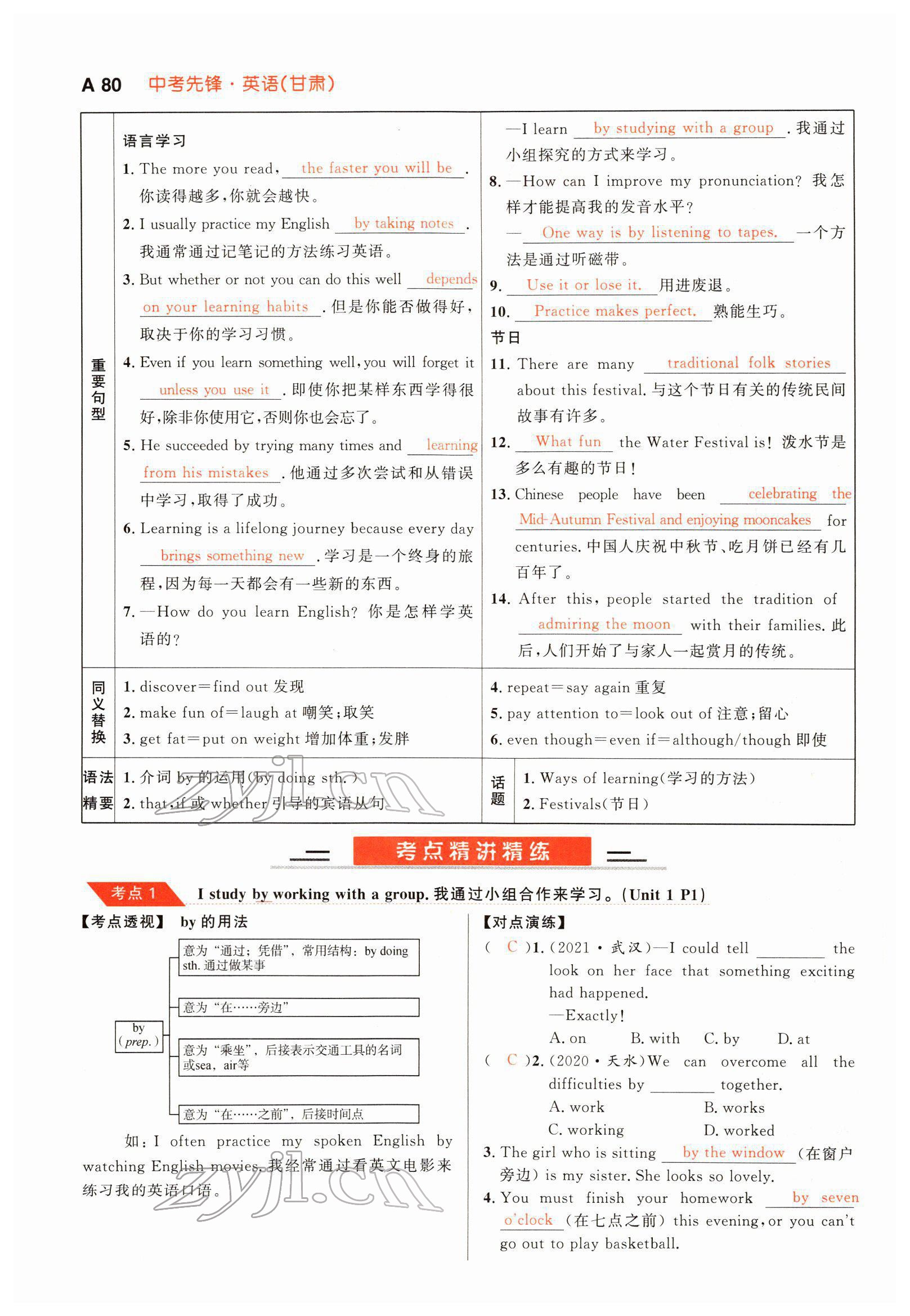 注:目前有些书本章节名称可能整理的还不是很完善,但都是按照顺序排列的,请同学们按照顺序仔细查找。练习册 2022年中考先锋英语甘肃专版吉林出版集团 答案主要是用来给同学们做完题方便对答案用的,请勿直接抄袭。