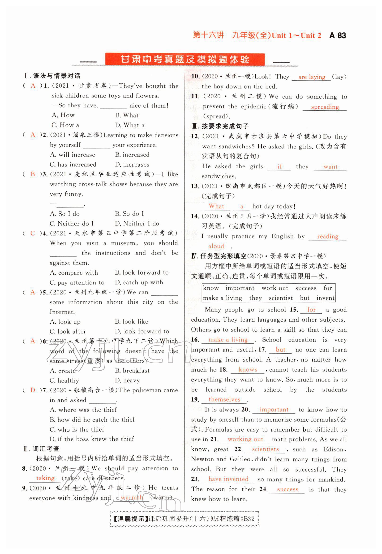 注:目前有些书本章节名称可能整理的还不是很完善,但都是按照顺序排列的,请同学们按照顺序仔细查找。练习册 2022年中考先锋英语甘肃专版吉林出版集团 答案主要是用来给同学们做完题方便对答案用的,请勿直接抄袭。