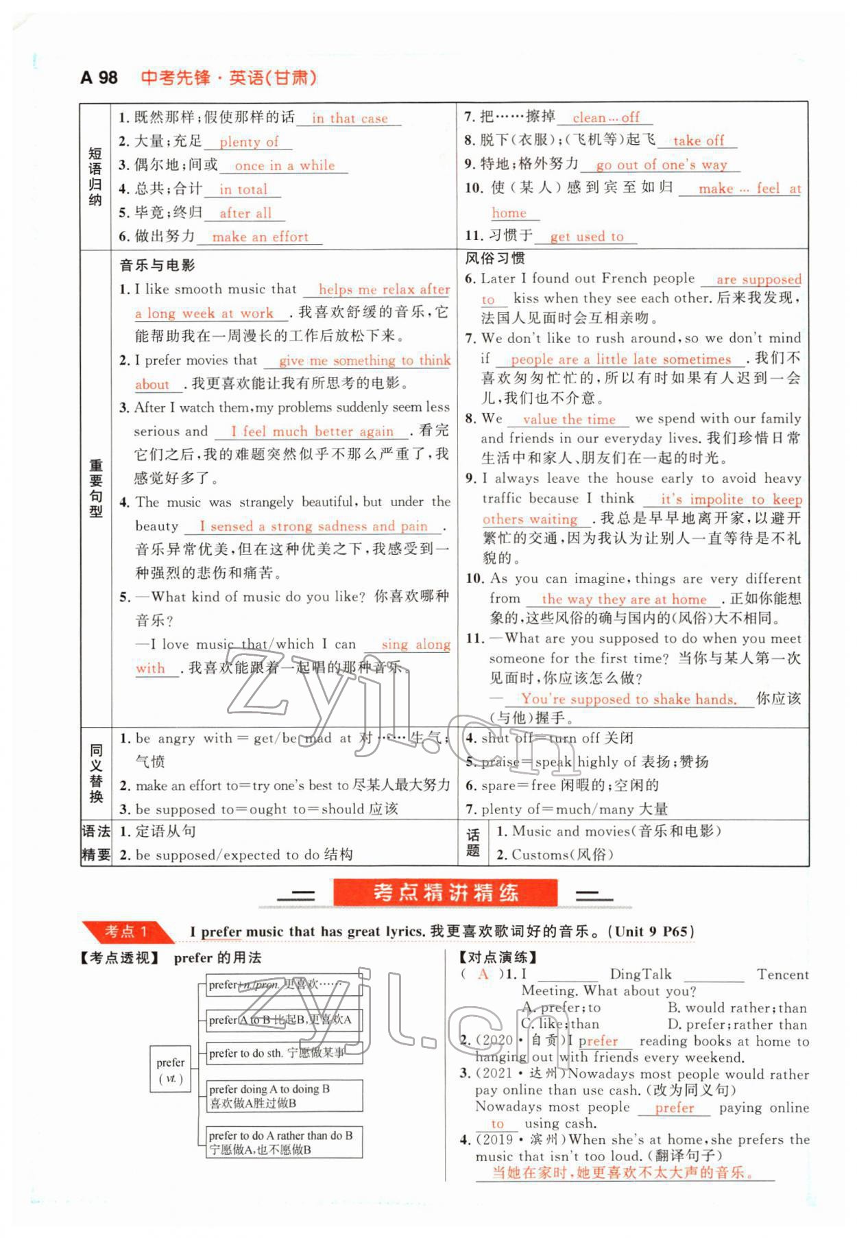 注:目前有些书本章节名称可能整理的还不是很完善,但都是按照顺序排列的,请同学们按照顺序仔细查找。练习册 2022年中考先锋英语甘肃专版吉林出版集团 答案主要是用来给同学们做完题方便对答案用的,请勿直接抄袭。