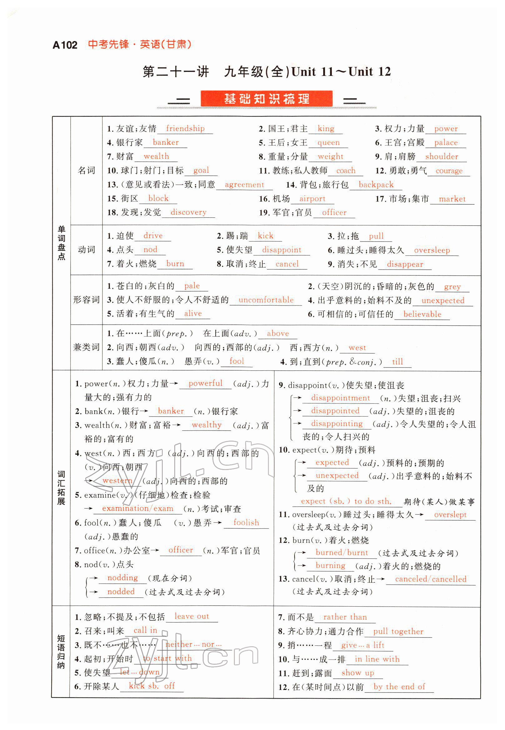 注:目前有些书本章节名称可能整理的还不是很完善,但都是按照顺序排列的,请同学们按照顺序仔细查找。练习册 2022年中考先锋英语甘肃专版吉林出版集团 答案主要是用来给同学们做完题方便对答案用的,请勿直接抄袭。