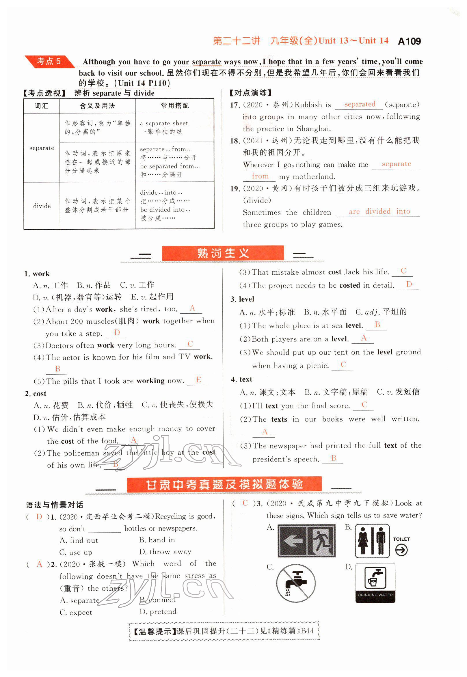 注:目前有些书本章节名称可能整理的还不是很完善,但都是按照顺序排列的,请同学们按照顺序仔细查找。练习册 2022年中考先锋英语甘肃专版吉林出版集团 答案主要是用来给同学们做完题方便对答案用的,请勿直接抄袭。