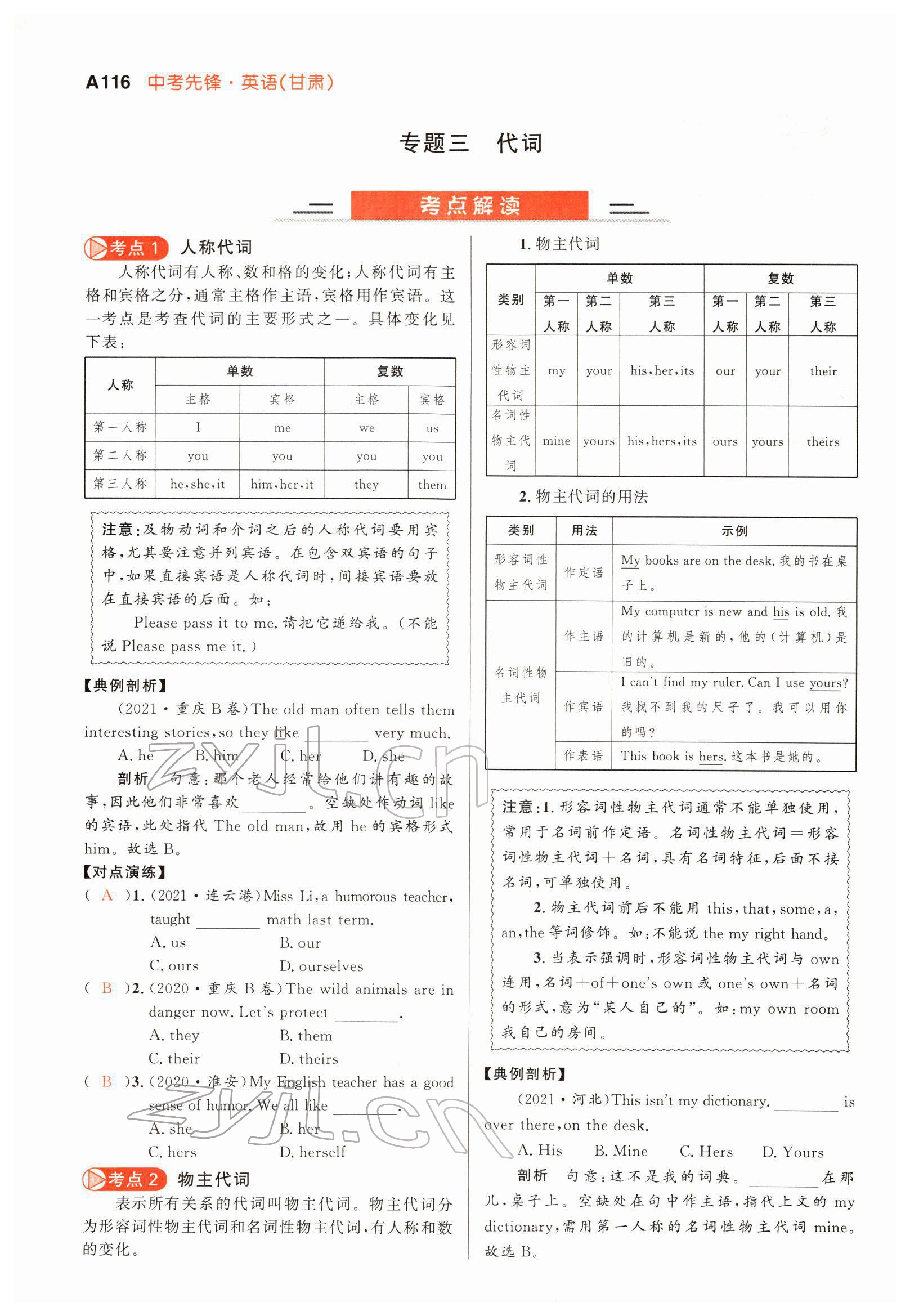 注:目前有些书本章节名称可能整理的还不是很完善,但都是按照顺序排列的,请同学们按照顺序仔细查找。练习册 2022年中考先锋英语甘肃专版吉林出版集团 答案主要是用来给同学们做完题方便对答案用的,请勿直接抄袭。