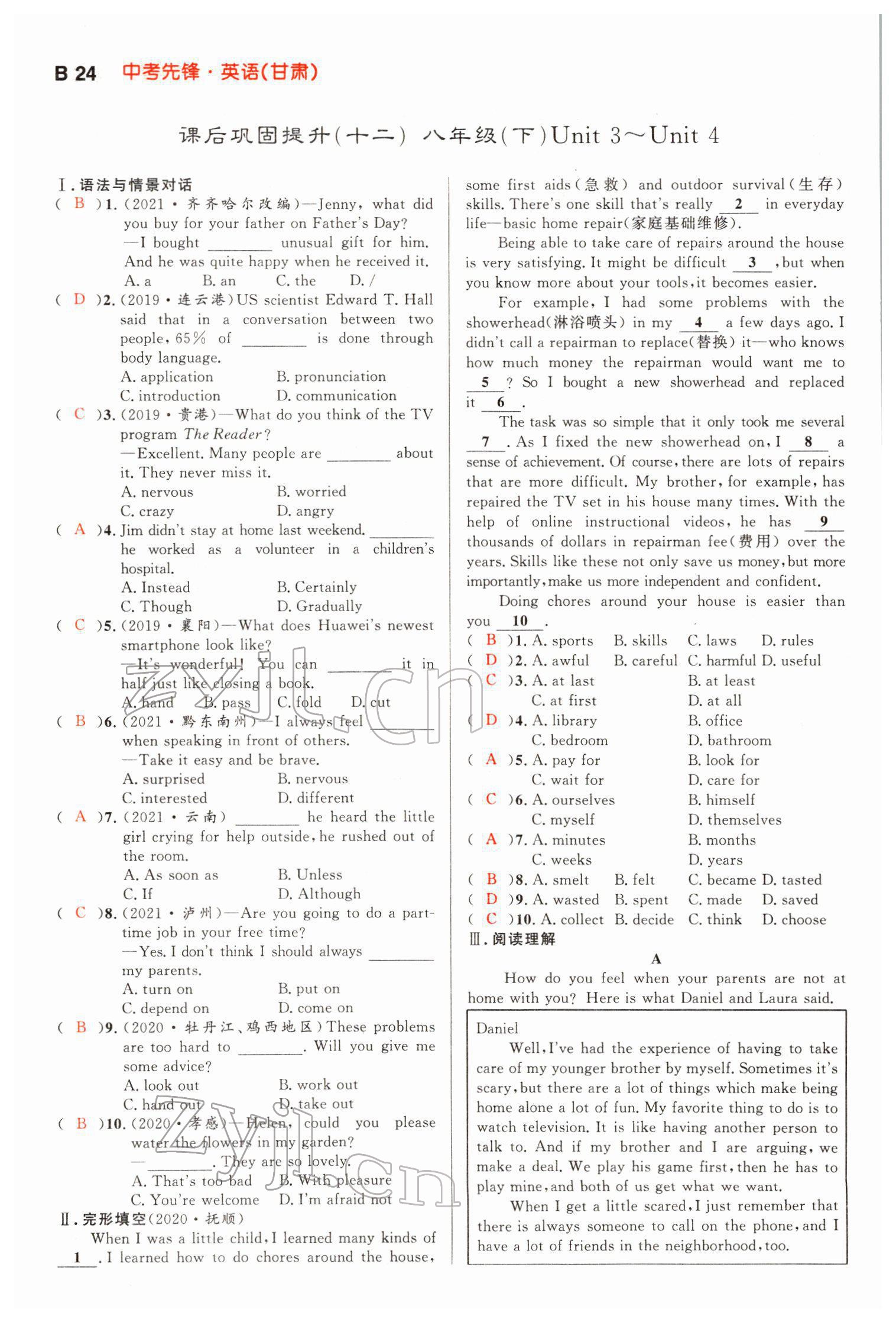 注:目前有些书本章节名称可能整理的还不是很完善,但都是按照顺序排列的,请同学们按照顺序仔细查找。练习册 2022年中考先锋英语甘肃专版吉林出版集团 答案主要是用来给同学们做完题方便对答案用的,请勿直接抄袭。