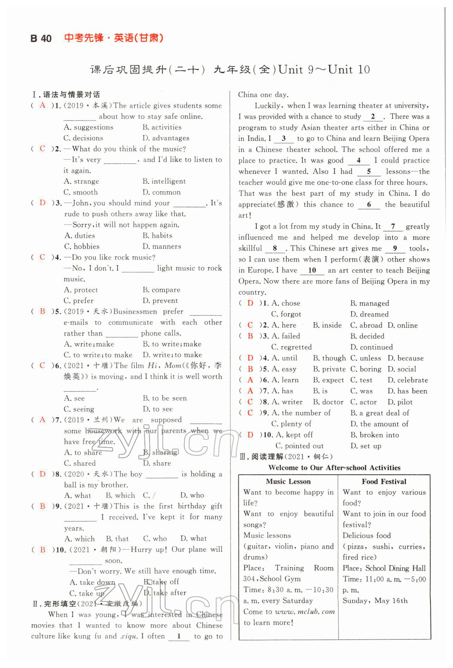 注:目前有些书本章节名称可能整理的还不是很完善,但都是按照顺序排列的,请同学们按照顺序仔细查找。练习册 2022年中考先锋英语甘肃专版吉林出版集团 答案主要是用来给同学们做完题方便对答案用的,请勿直接抄袭。