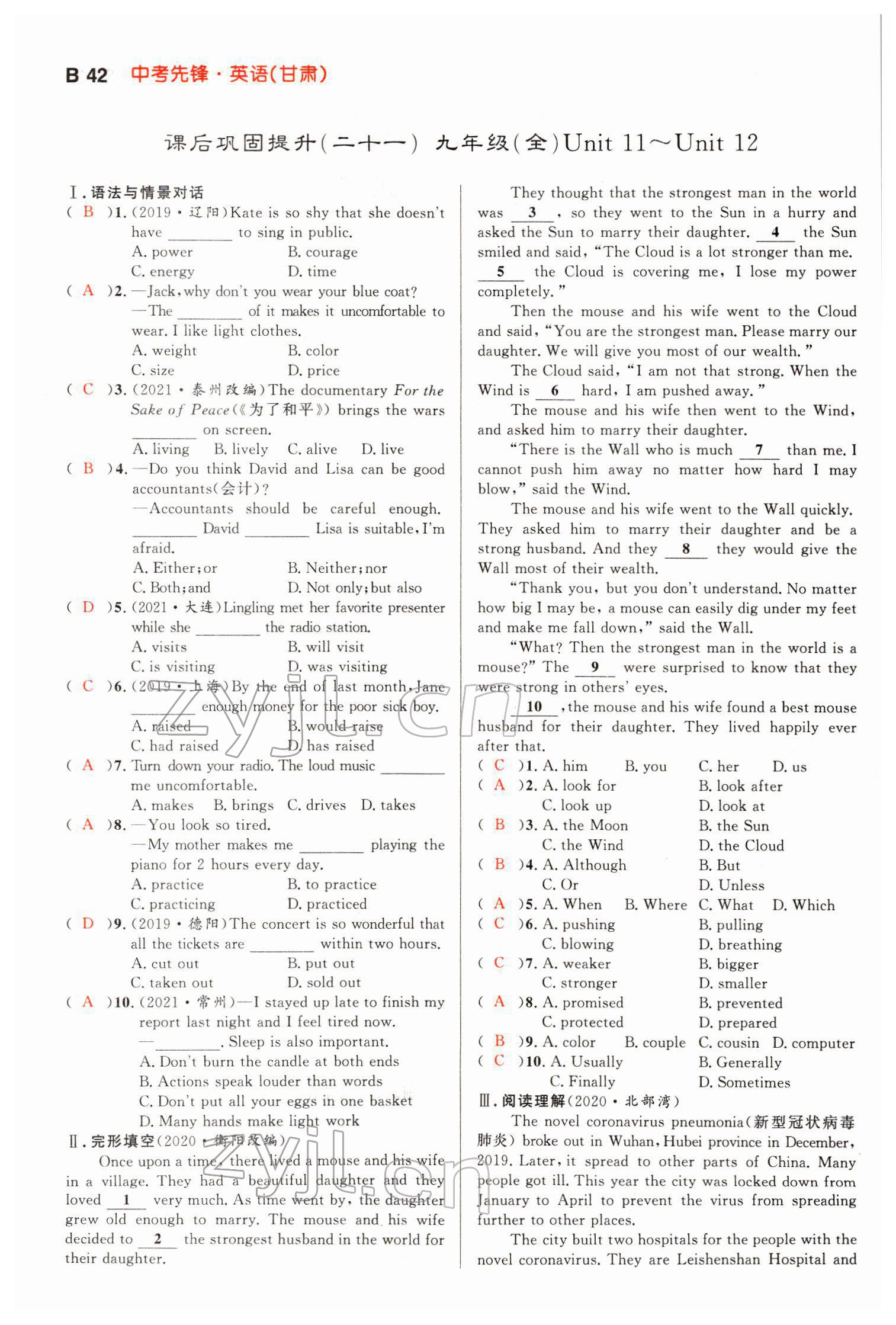 注:目前有些书本章节名称可能整理的还不是很完善,但都是按照顺序排列的,请同学们按照顺序仔细查找。练习册 2022年中考先锋英语甘肃专版吉林出版集团 答案主要是用来给同学们做完题方便对答案用的,请勿直接抄袭。