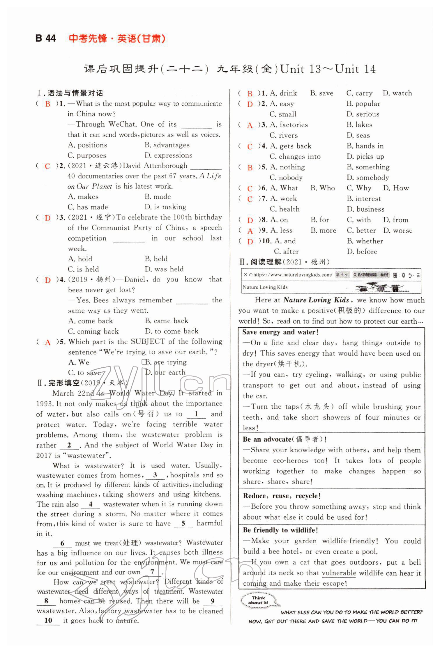 注:目前有些书本章节名称可能整理的还不是很完善,但都是按照顺序排列的,请同学们按照顺序仔细查找。练习册 2022年中考先锋英语甘肃专版吉林出版集团 答案主要是用来给同学们做完题方便对答案用的,请勿直接抄袭。