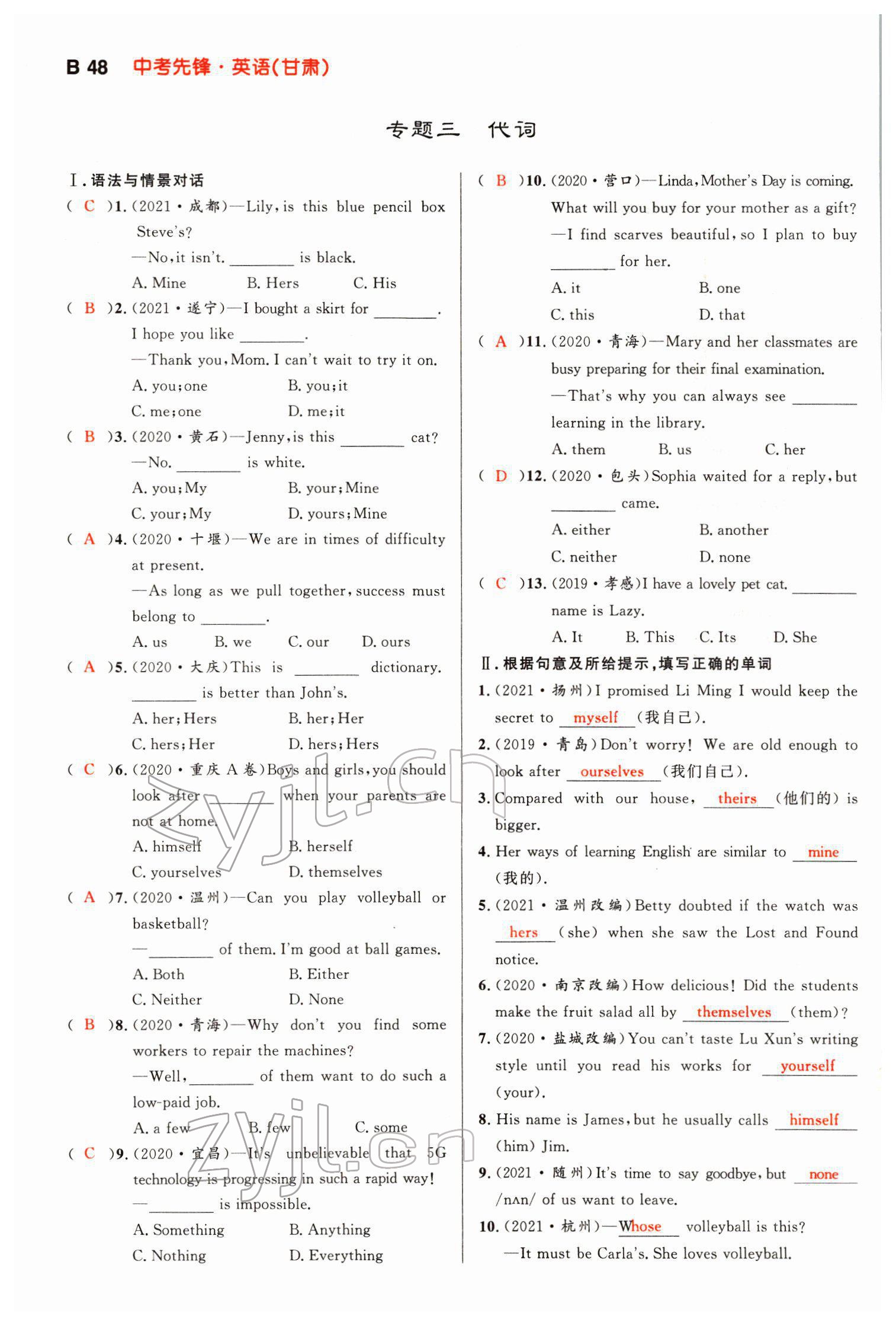 注:目前有些书本章节名称可能整理的还不是很完善,但都是按照顺序排列的,请同学们按照顺序仔细查找。练习册 2022年中考先锋英语甘肃专版吉林出版集团 答案主要是用来给同学们做完题方便对答案用的,请勿直接抄袭。