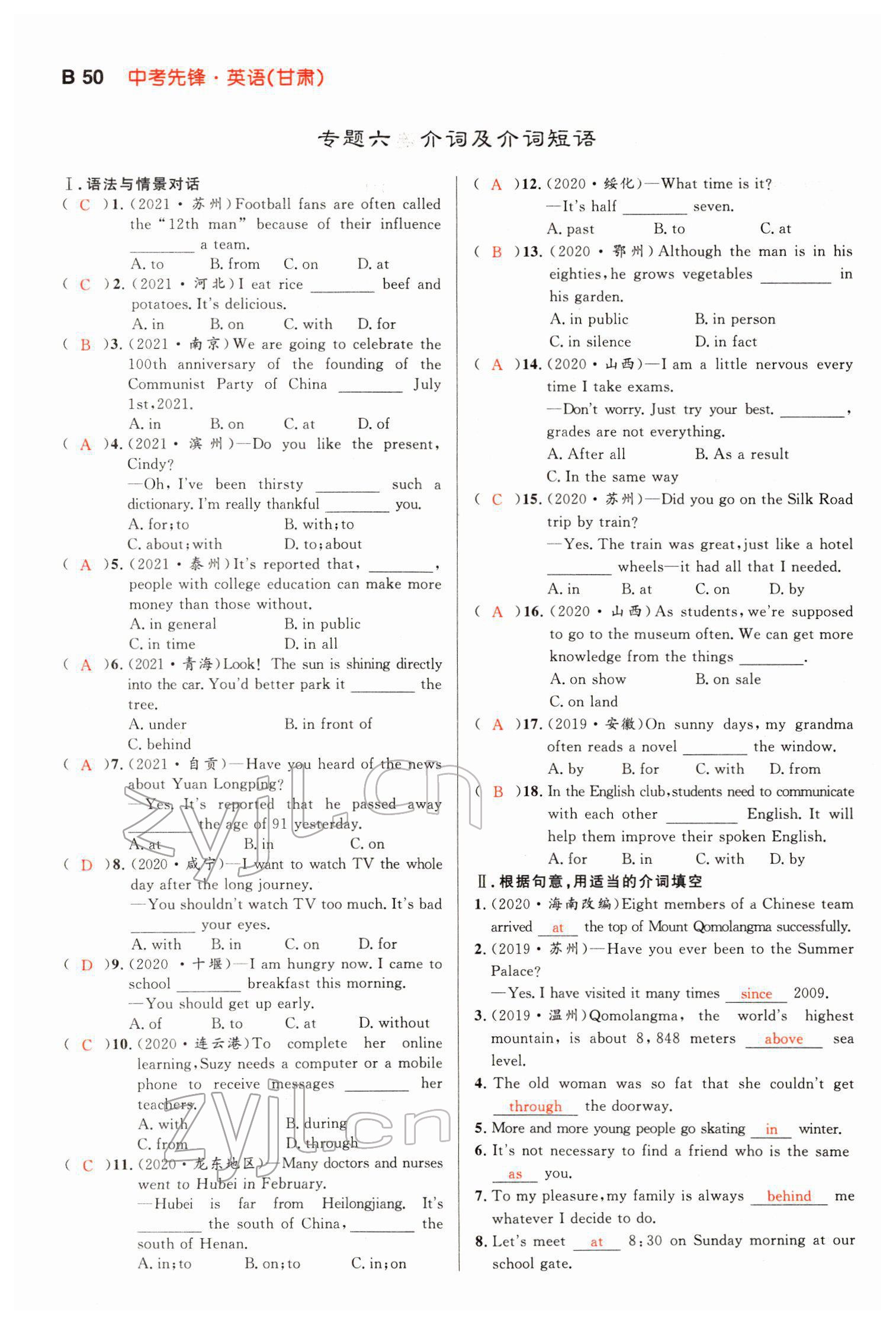 注:目前有些书本章节名称可能整理的还不是很完善,但都是按照顺序排列的,请同学们按照顺序仔细查找。练习册 2022年中考先锋英语甘肃专版吉林出版集团 答案主要是用来给同学们做完题方便对答案用的,请勿直接抄袭。