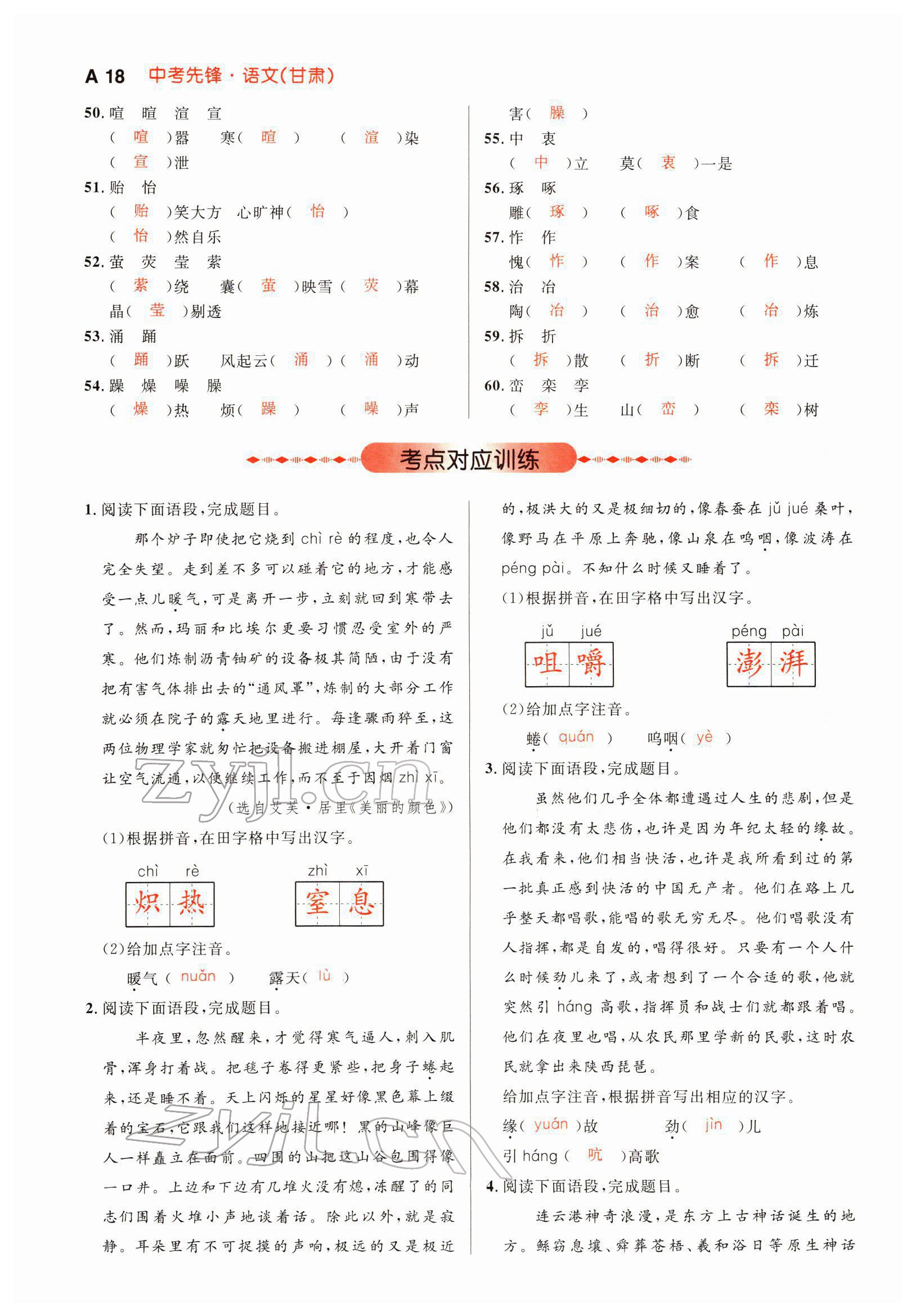 注:目前有些书本章节名称可能整理的还不是很完善,但都是按照顺序排列的,请同学们按照顺序仔细查找。练习册 2022年中考先锋语文人教版甘肃专版吉林出版集团 答案主要是用来给同学们做完题方便对答案用的,请勿直接抄袭。