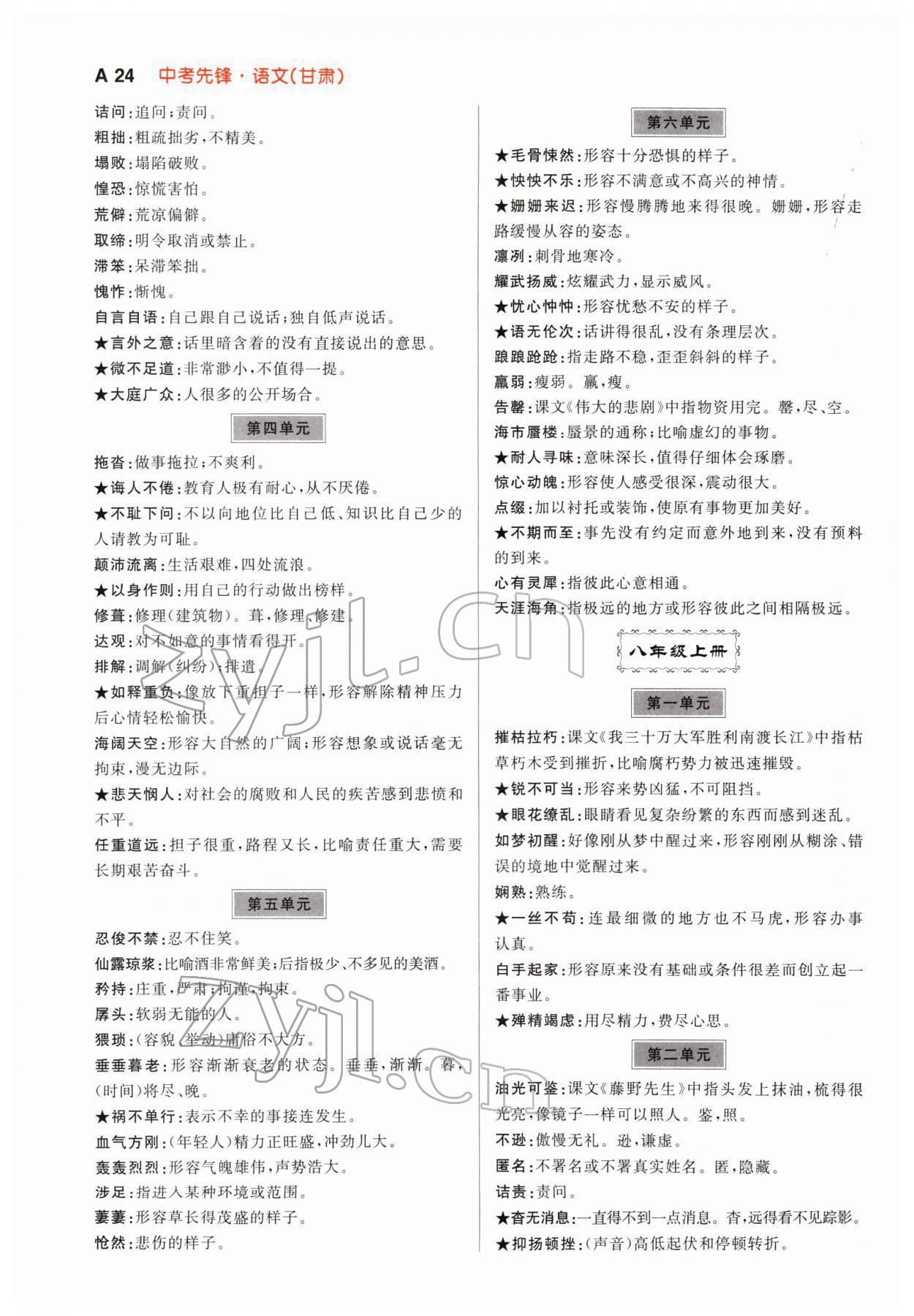 注:目前有些书本章节名称可能整理的还不是很完善,但都是按照顺序排列的,请同学们按照顺序仔细查找。练习册 2022年中考先锋语文人教版甘肃专版吉林出版集团 答案主要是用来给同学们做完题方便对答案用的,请勿直接抄袭。