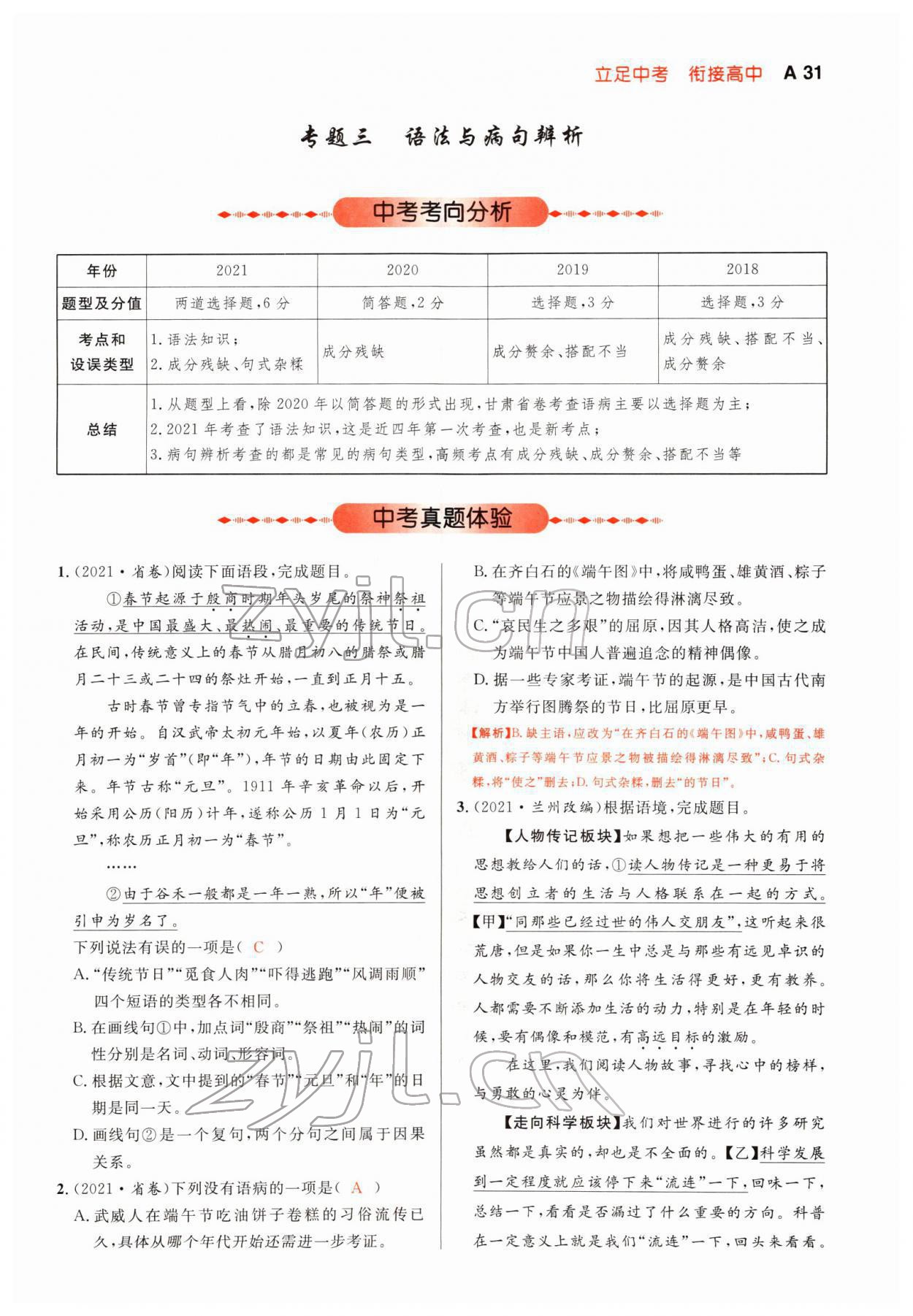 2022年中考先锋语文人教版甘肃专版吉林出版集团