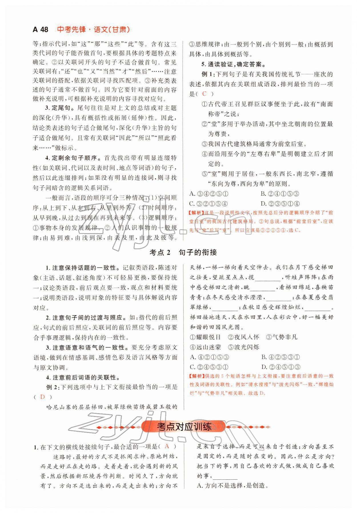 注:目前有些书本章节名称可能整理的还不是很完善,但都是按照顺序排列的,请同学们按照顺序仔细查找。练习册 2022年中考先锋语文人教版甘肃专版吉林出版集团 答案主要是用来给同学们做完题方便对答案用的,请勿直接抄袭。