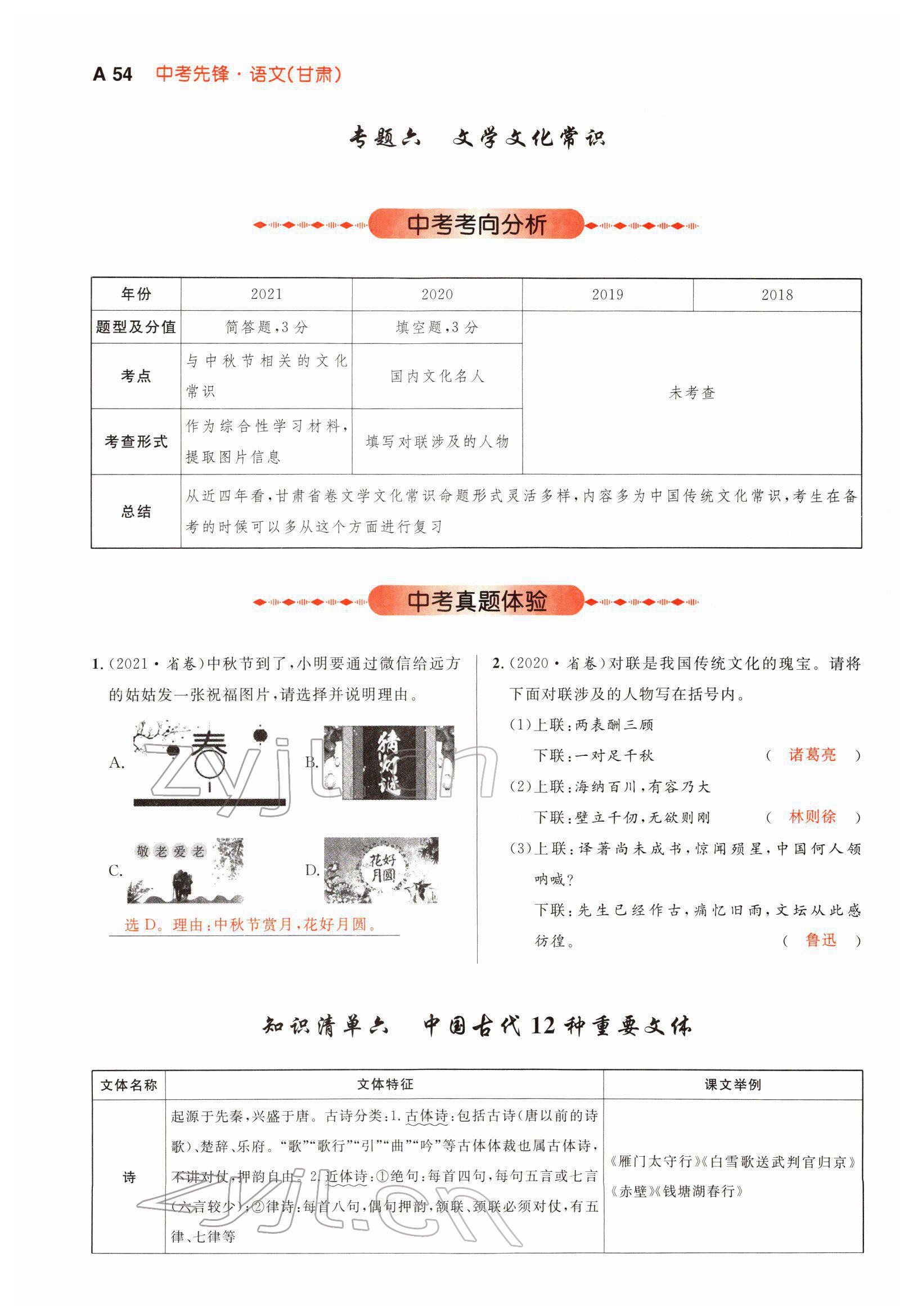 2022年中考先锋语文人教版甘肃专版吉林出版集团