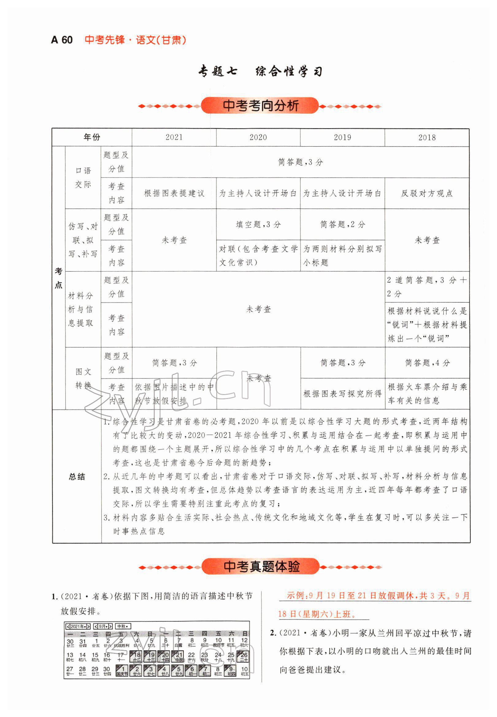 2022年中考先锋语文人教版甘肃专版吉林出版集团