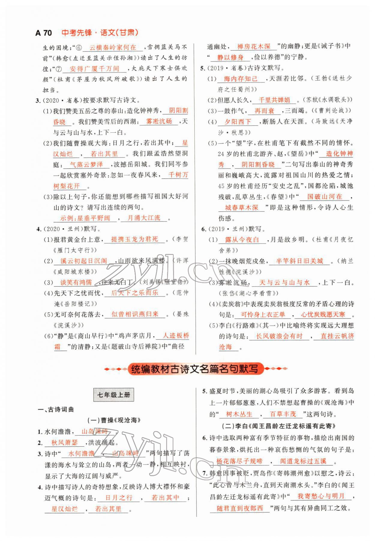 注:目前有些书本章节名称可能整理的还不是很完善,但都是按照顺序排列的,请同学们按照顺序仔细查找。练习册 2022年中考先锋语文人教版甘肃专版吉林出版集团 答案主要是用来给同学们做完题方便对答案用的,请勿直接抄袭。