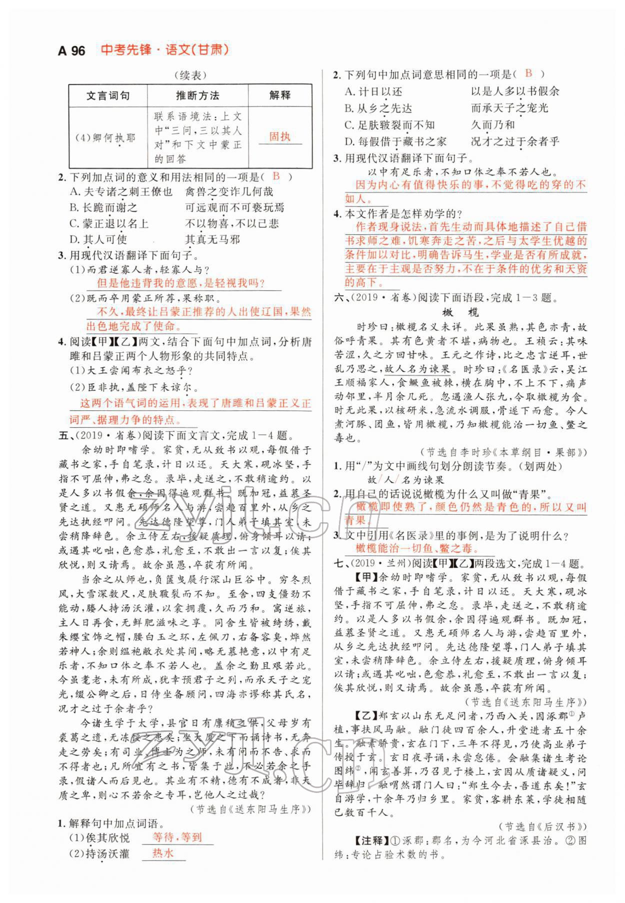 注:目前有些书本章节名称可能整理的还不是很完善,但都是按照顺序排列的,请同学们按照顺序仔细查找。练习册 2022年中考先锋语文人教版甘肃专版吉林出版集团 答案主要是用来给同学们做完题方便对答案用的,请勿直接抄袭。