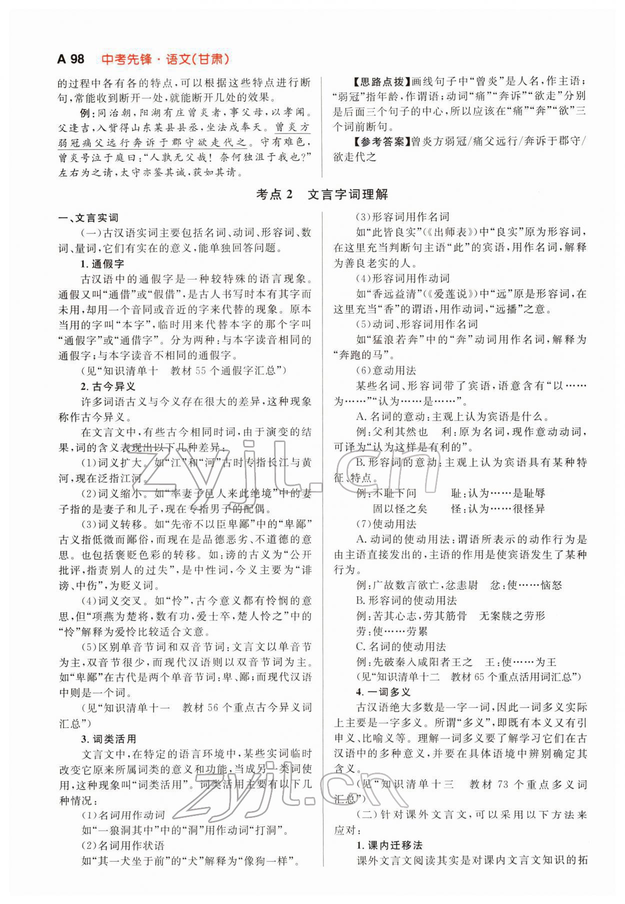 2022年中考先锋语文人教版甘肃专版吉林出版集团
