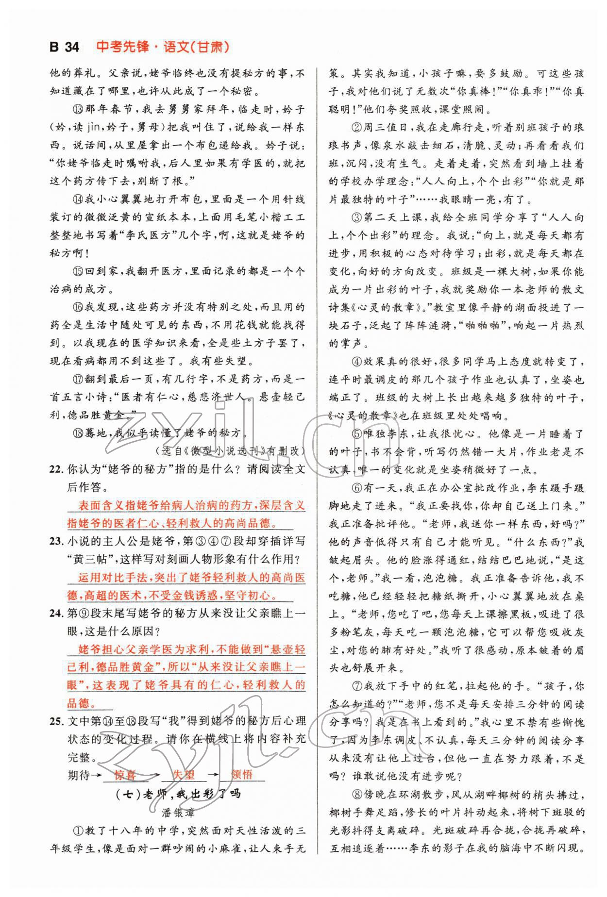 注:目前有些书本章节名称可能整理的还不是很完善,但都是按照顺序排列的,请同学们按照顺序仔细查找。练习册 2022年中考先锋语文人教版甘肃专版吉林出版集团 答案主要是用来给同学们做完题方便对答案用的,请勿直接抄袭。