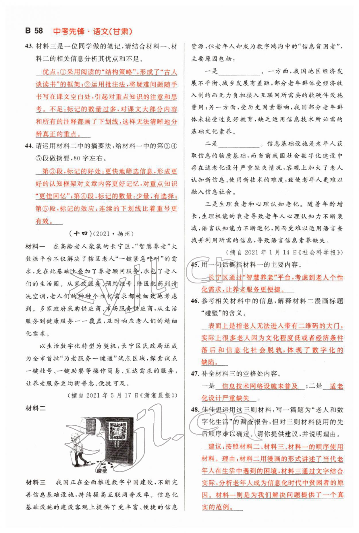 注:目前有些书本章节名称可能整理的还不是很完善,但都是按照顺序排列的,请同学们按照顺序仔细查找。练习册 2022年中考先锋语文人教版甘肃专版吉林出版集团 答案主要是用来给同学们做完题方便对答案用的,请勿直接抄袭。